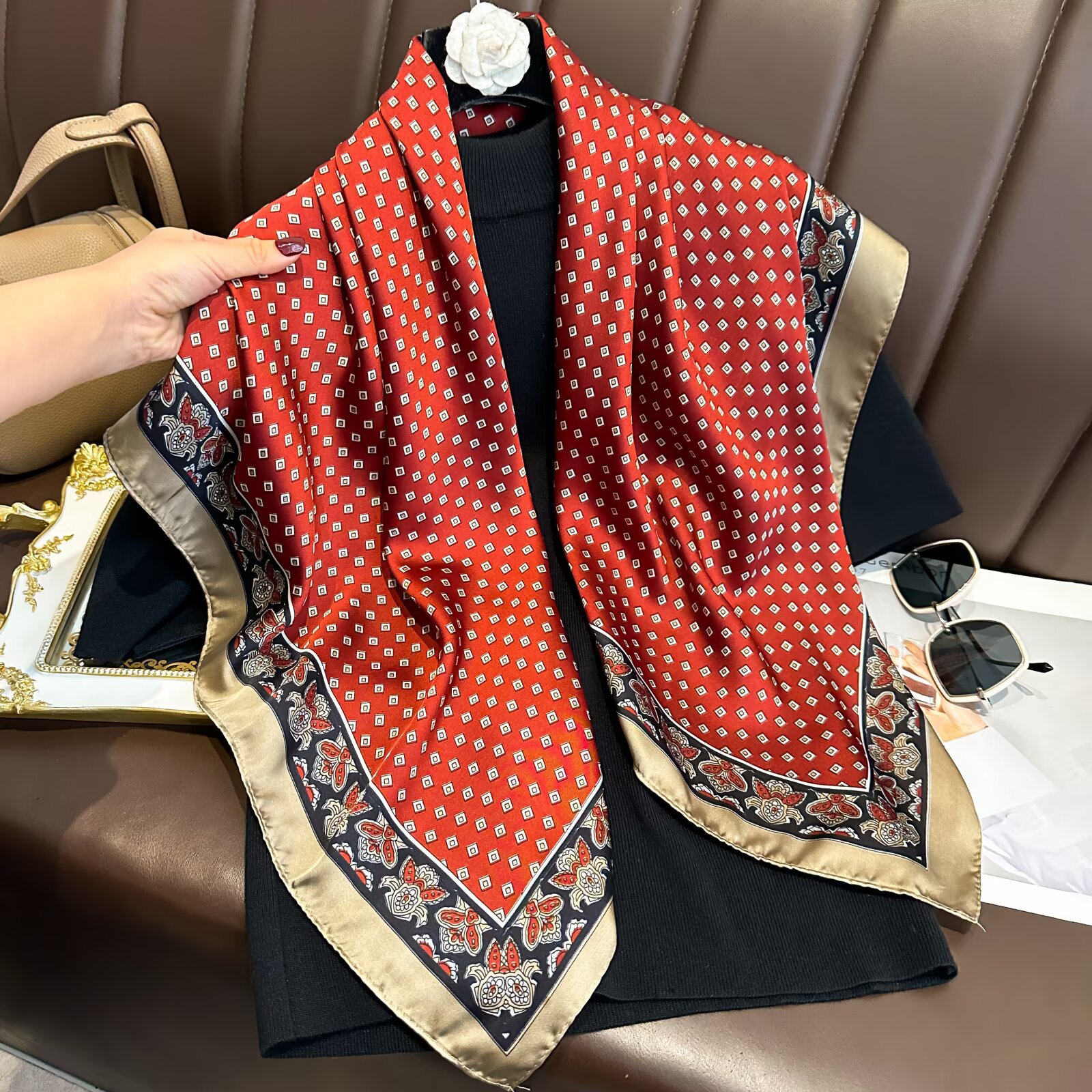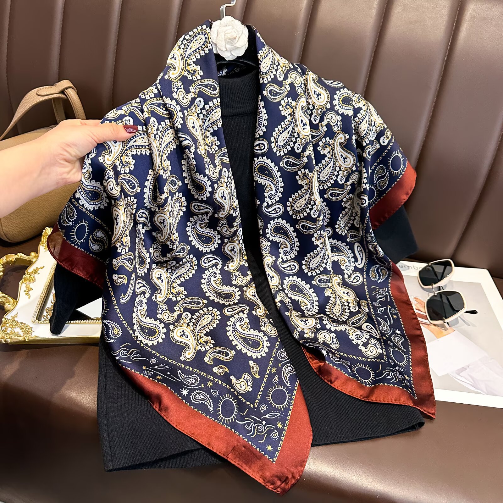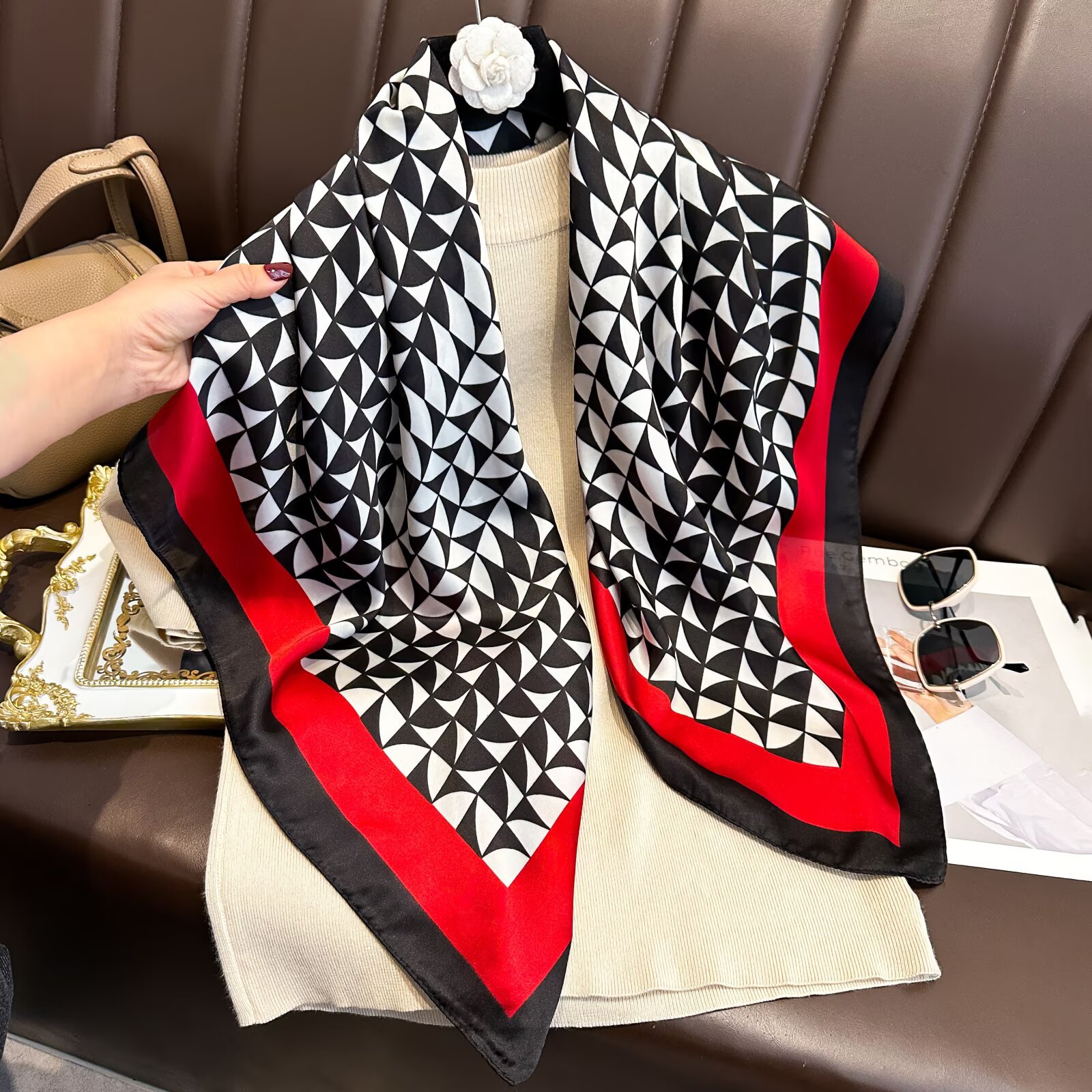 여름 실크 새틴 스카프 여성 빈티지 패션 실크 손 스카프 썬 스크린 뽕나무 실크 90 스퀘어 스카프