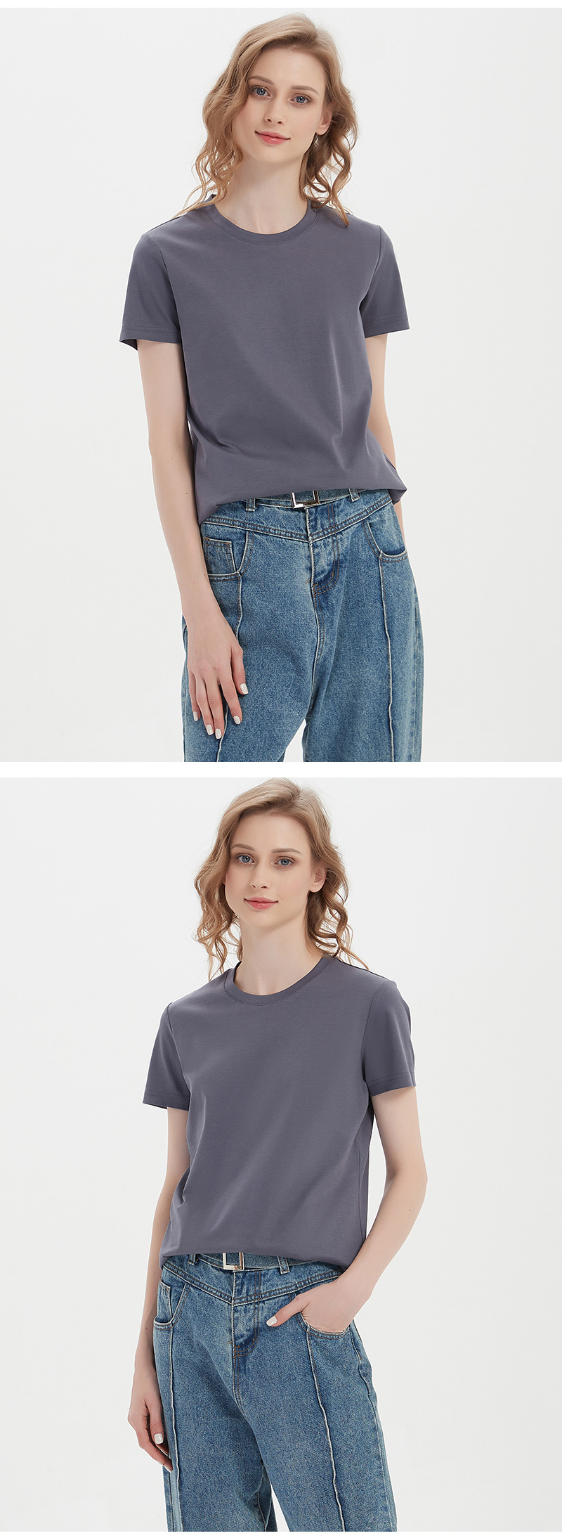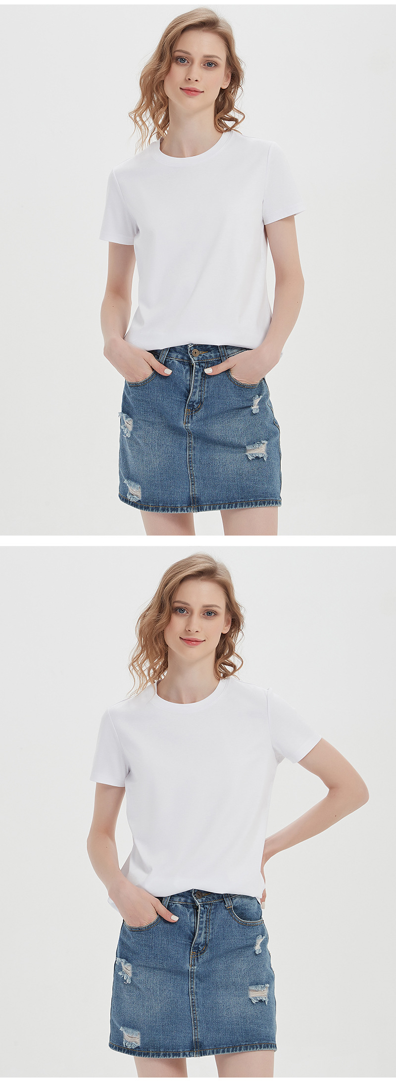 2026 고급 190g 고밀도 양면 액체 암모니아 코팅 면 티셔츠 여성 여름 반팔 순면 다용도 흰색 라운드넥 티셔츠스토어 가기