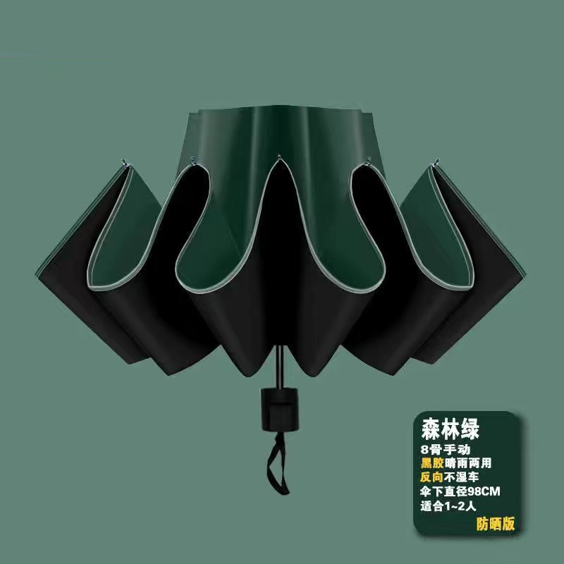 • [블랙 글루 포레스트 그린] 8 본 외부 수동 우산