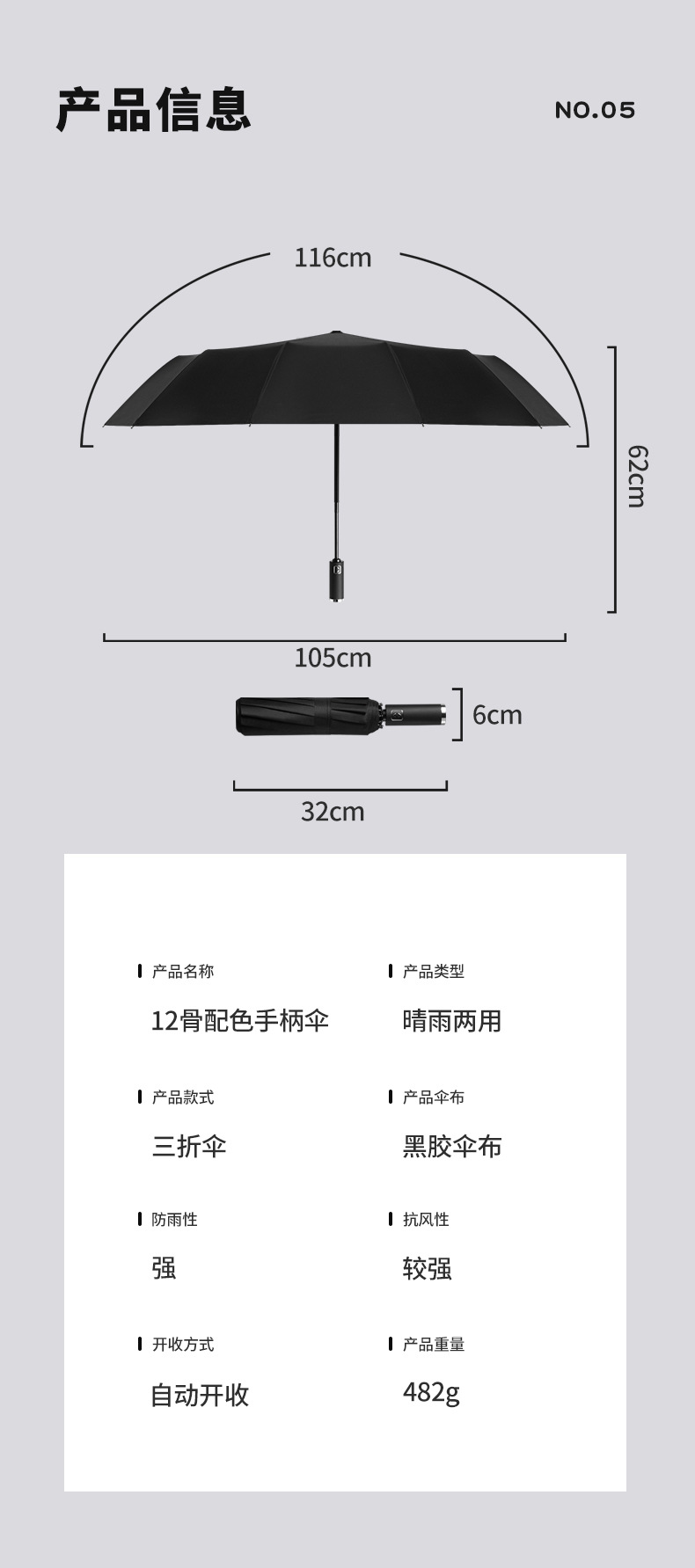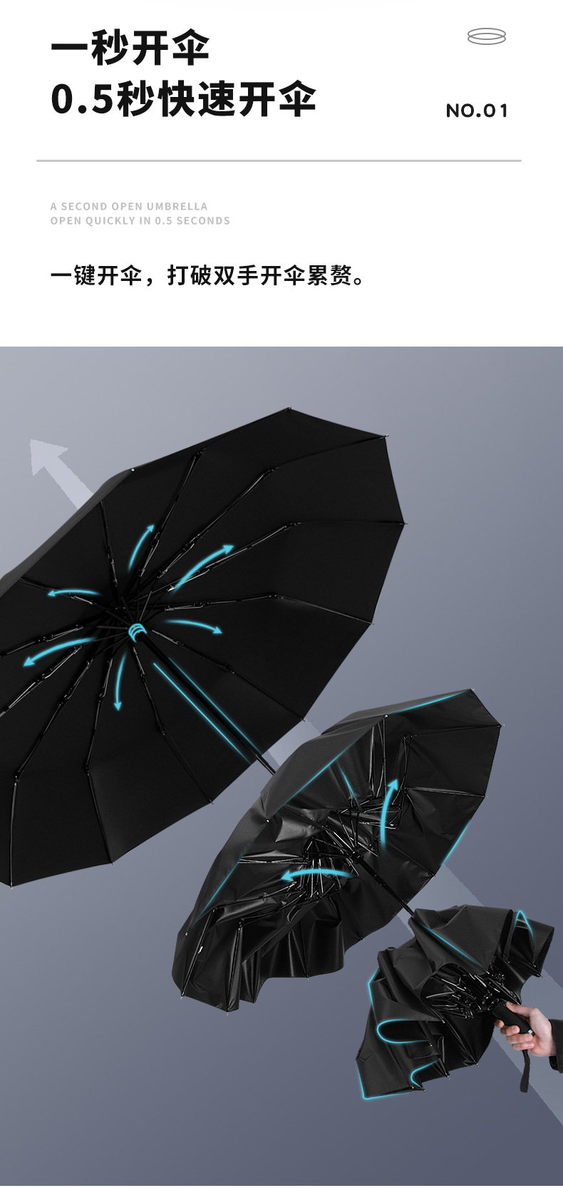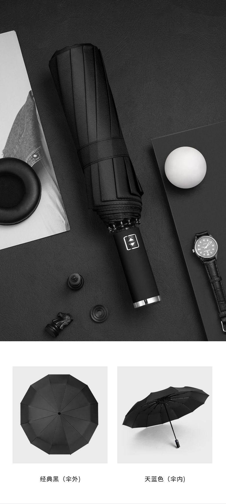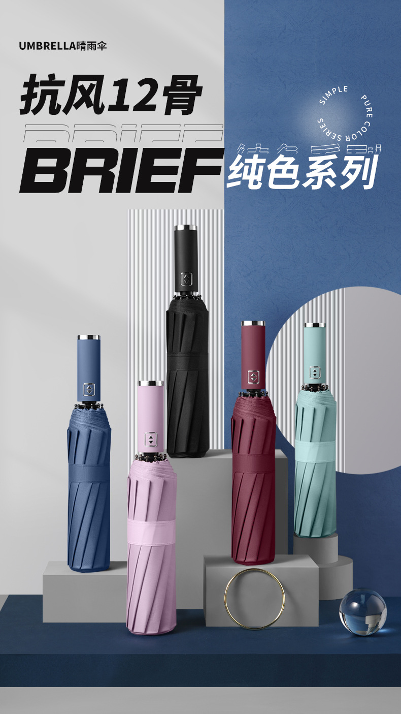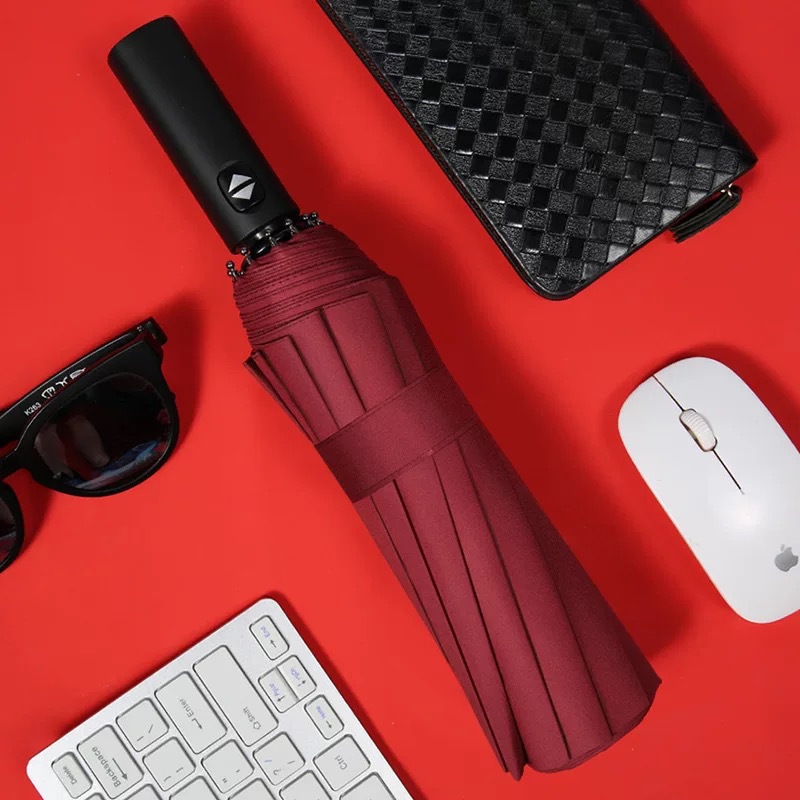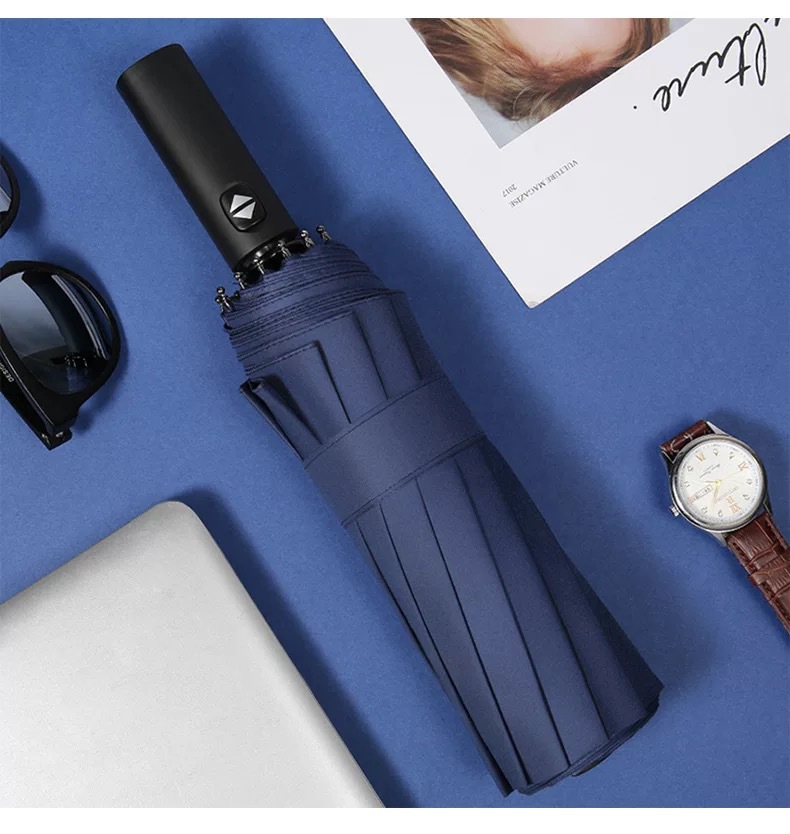 대형 도매 전자동 우산 대형 사업 3 중 양지 우산 검정 고무 선크림 양산 우산 12 본 접이식 우산
