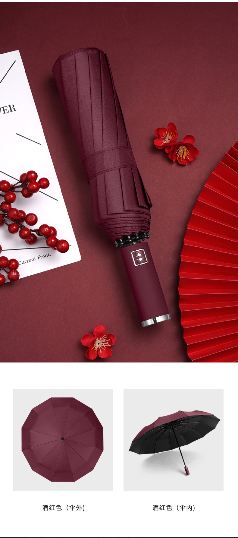 • [블랙 글루 버건디] 12 본 자동] 블랙 핸들