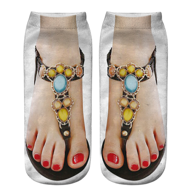 쪼리 매니큐어 양말 네일 3D 인쇄 양말 AliExpress TikTok 같은 스타일 인터넷 인기 재미있는 소녀 개인화 양말