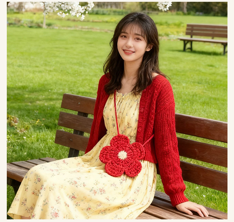 작은 홍화 꽃 짠 가방 순수한 손 크로 셰 뜨개질 크로스 바디 가방 진주 버클 울 가방 어깨 크로스 바디 플라워 스트로우 백스토어 가기