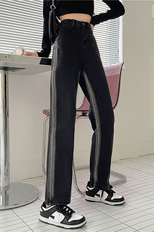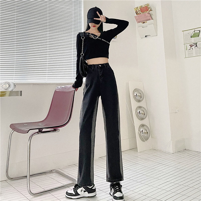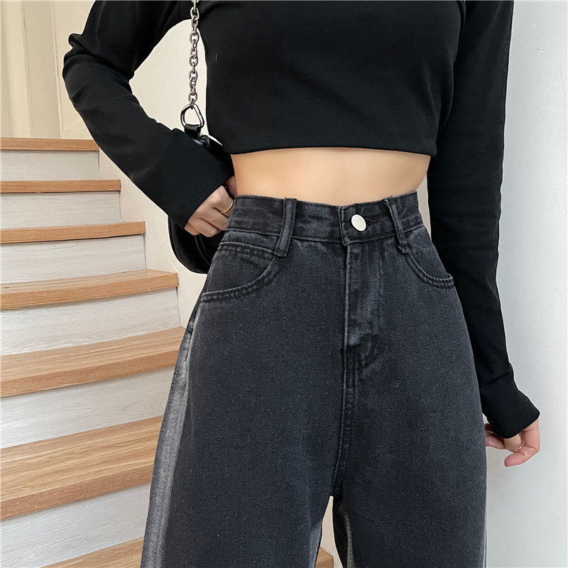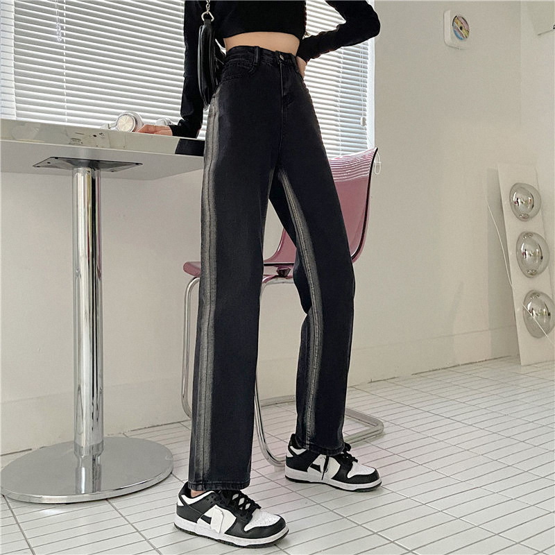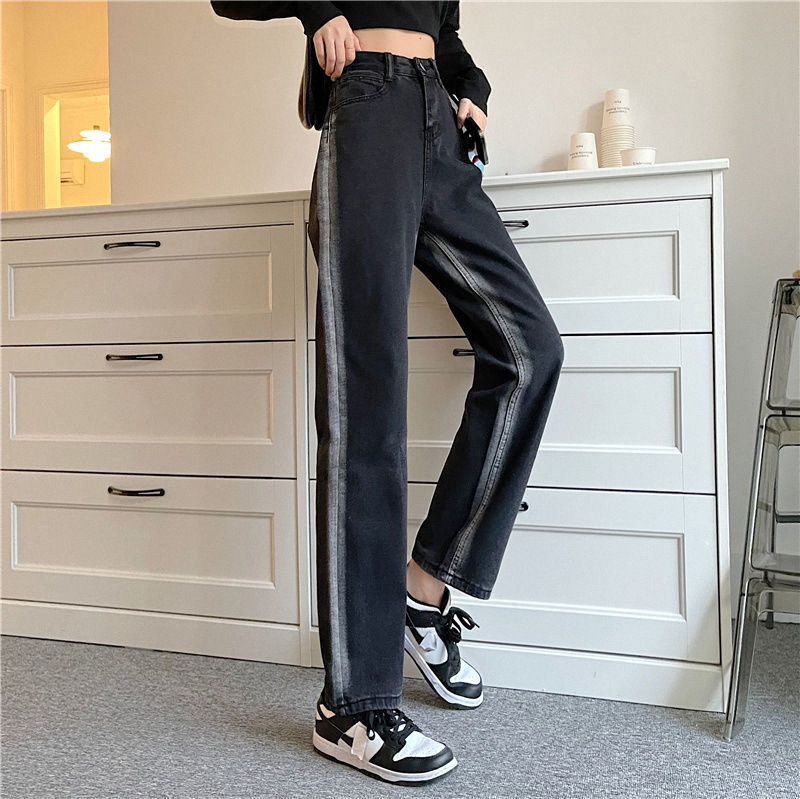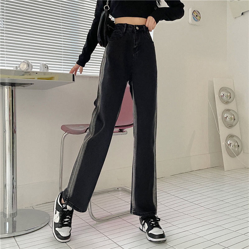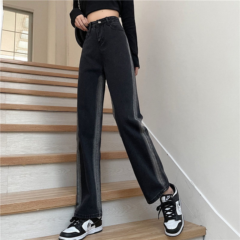 그라디언트 청바지 여성의 새로운 스타일 작은 하이 웨이스트 느슨한 슬림 봐 와이드 다리 드레이핑 스트레이트 바지스토어 가기