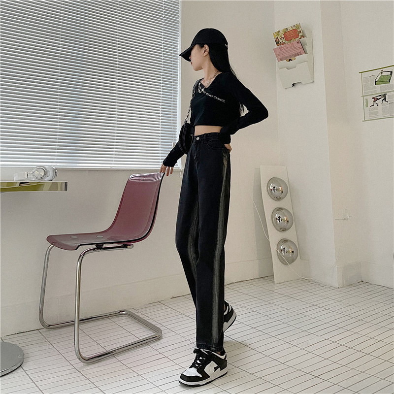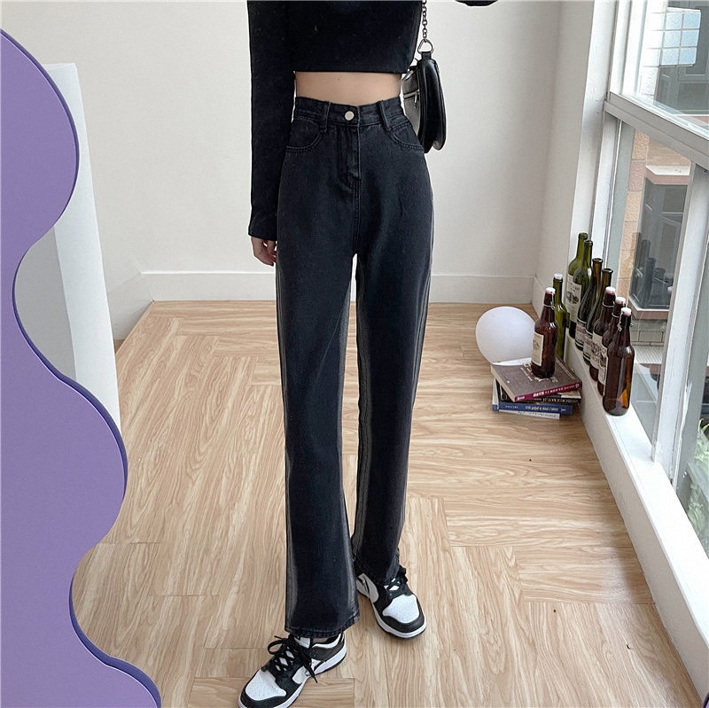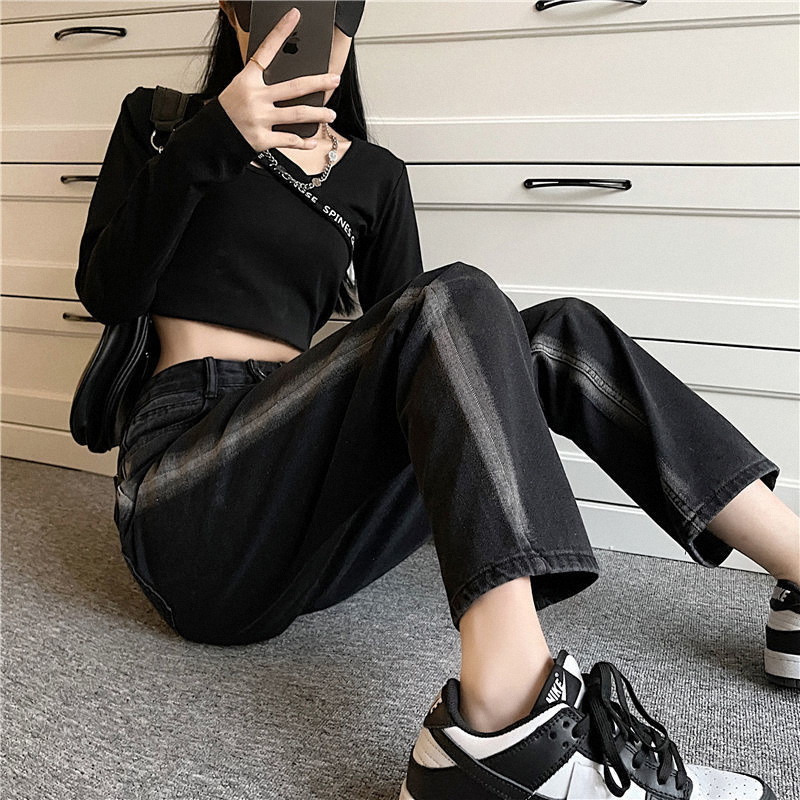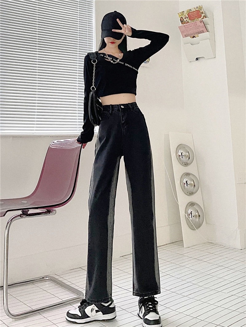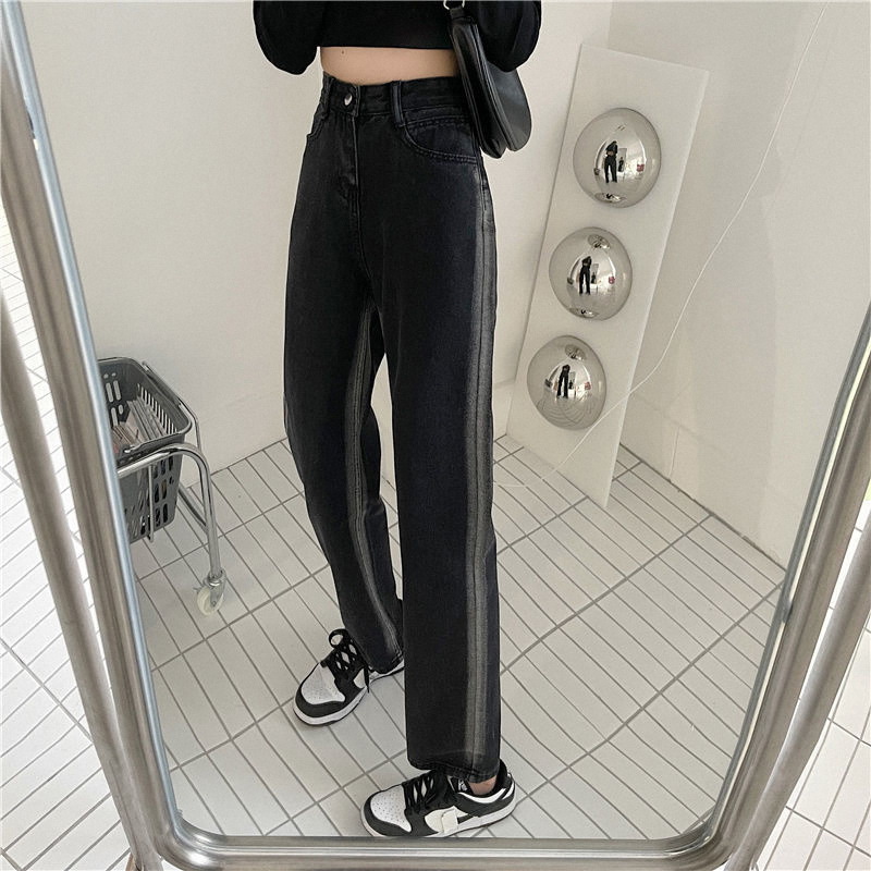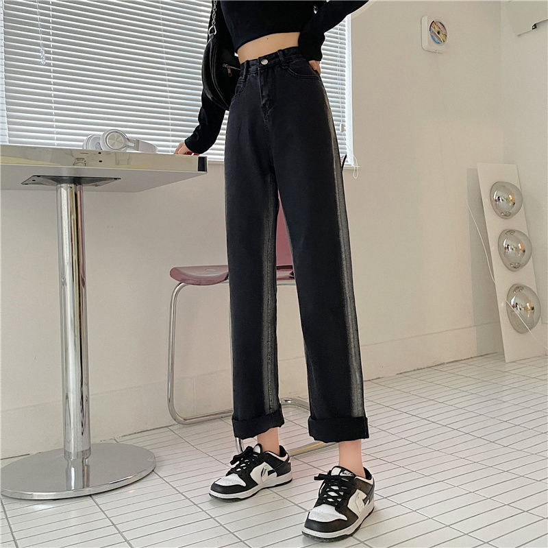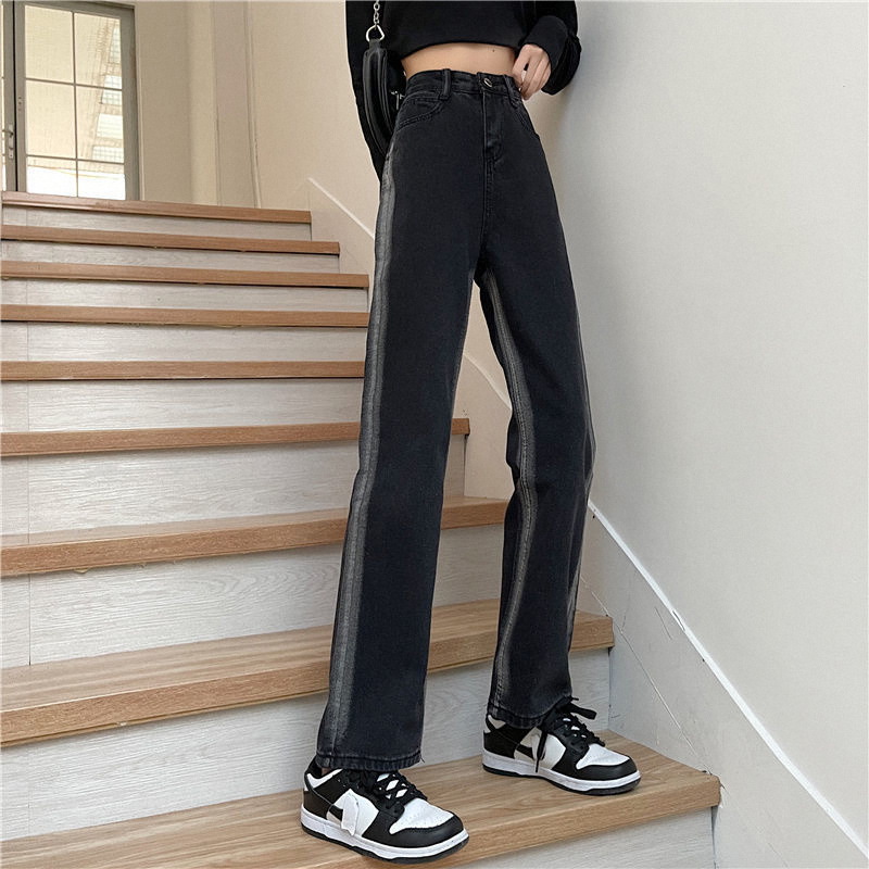 그라디언트 청바지 여성의 새로운 스타일 작은 하이 웨이스트 느슨한 슬림 봐 와이드 다리 드레이핑 스트레이트 바지스토어 가기