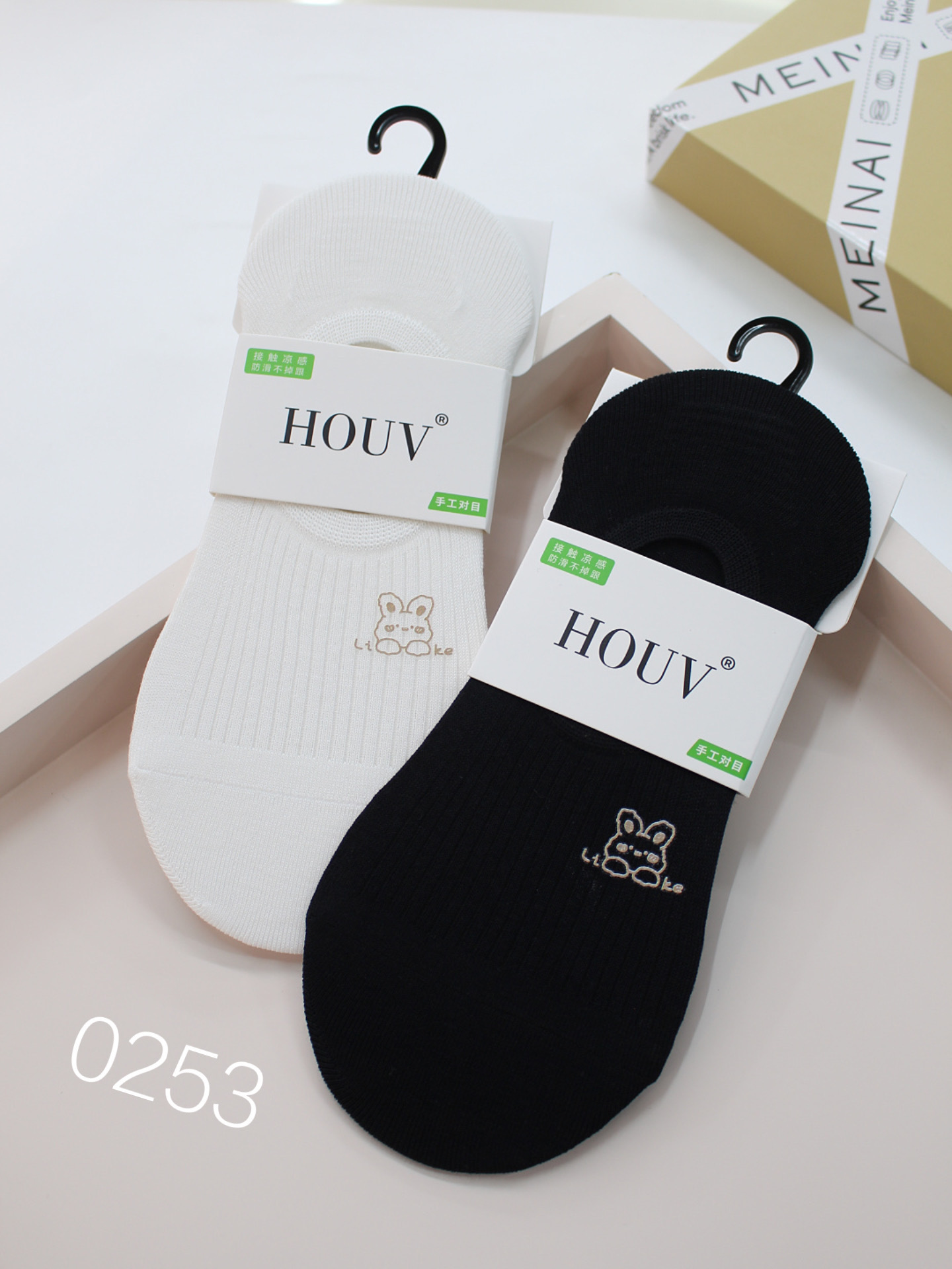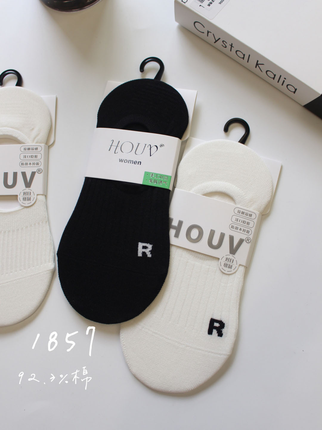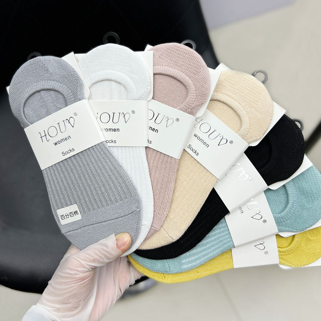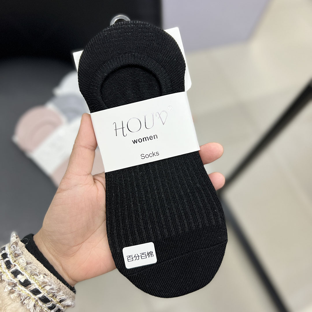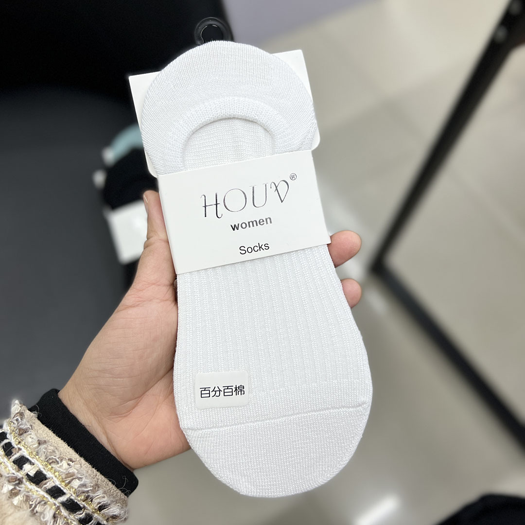 HOUV 여성용 보트삭스, 골지면 통기성 실리콘 논슬립 얕은 입구 무지 투명 양말 도매 1806