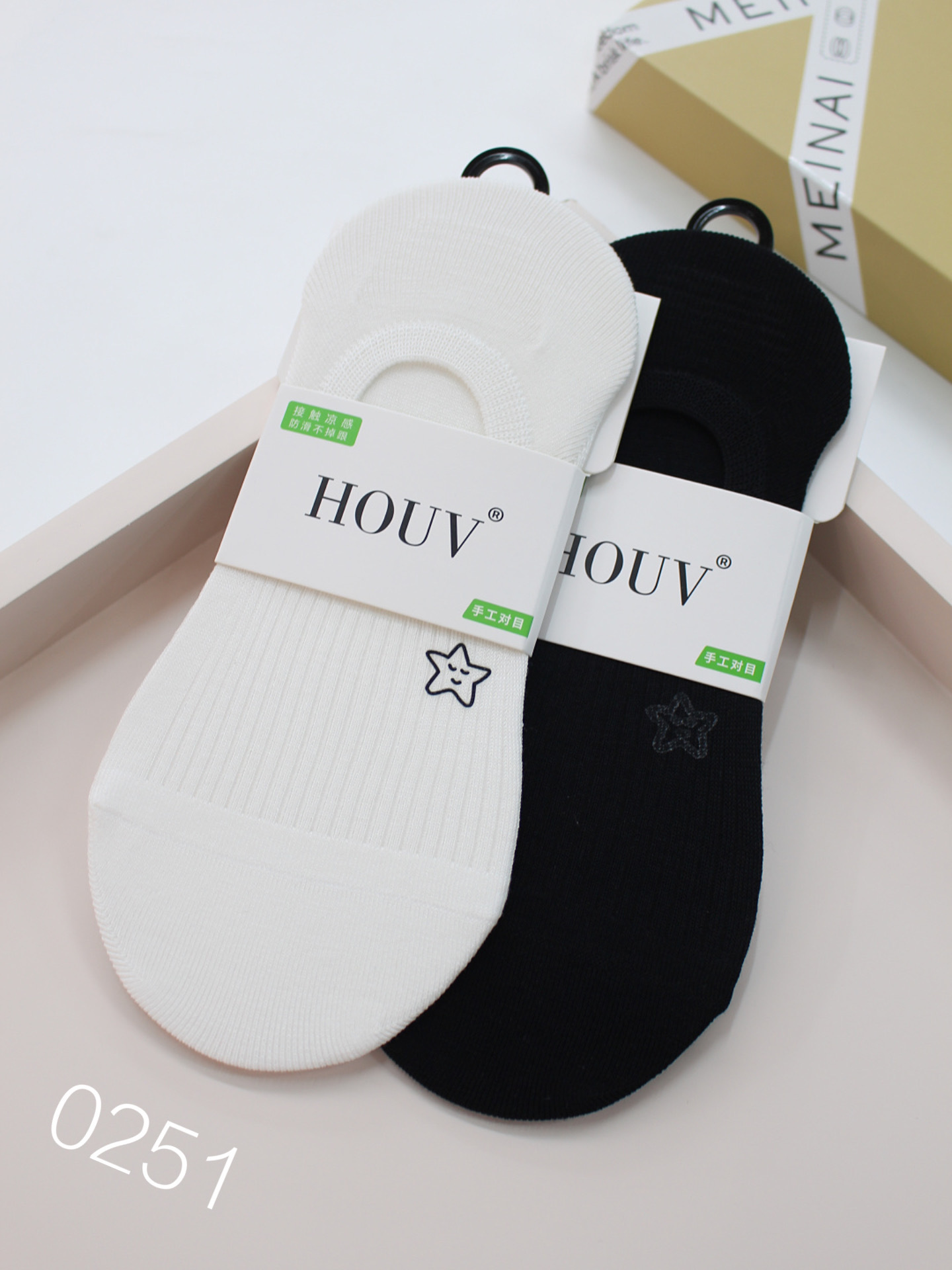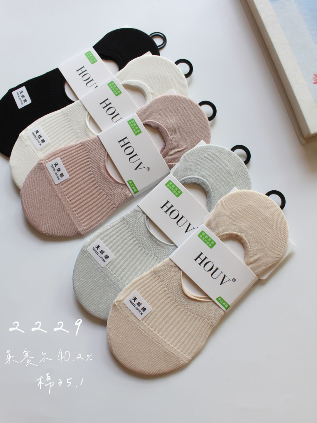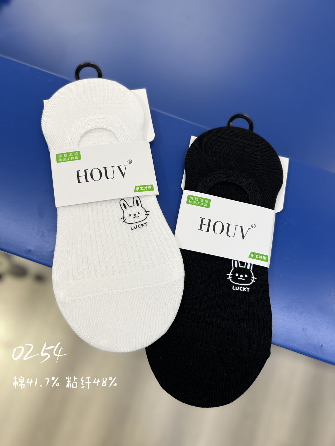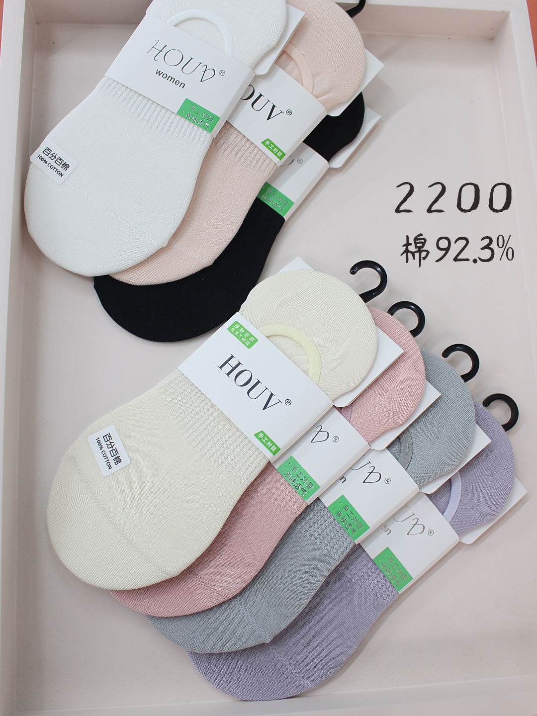 HOUV 여성용 보트삭스, 골지면 통기성 실리콘 논슬립 얕은 입구 무지 투명 양말 도매 1806