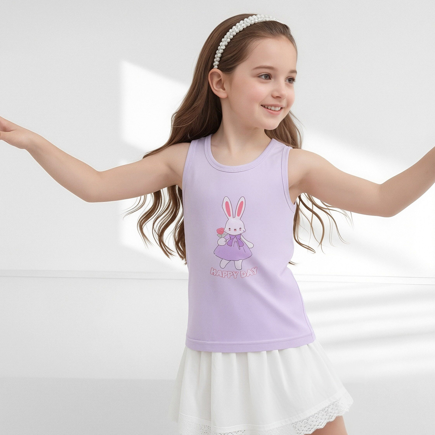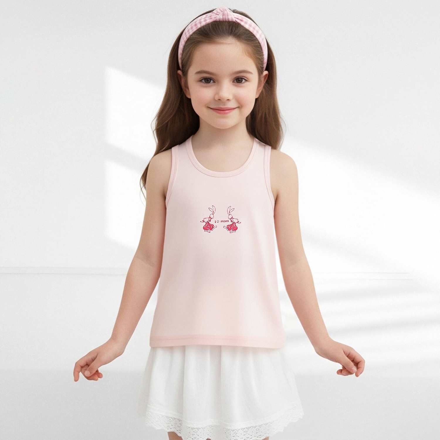 봄철 아동용 순면 조끼, 남아 여아용 만화 캐릭터 베이스 조끼, 라이크라 면 고탄력 사계절 이너웨어 조끼