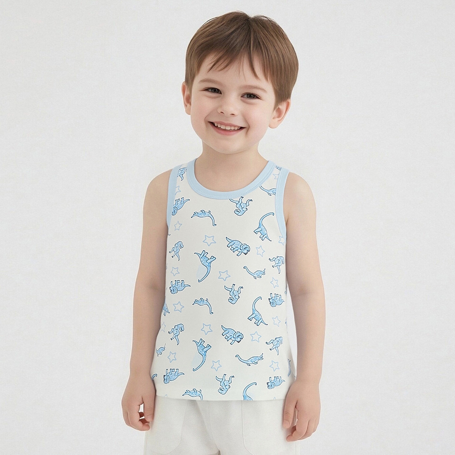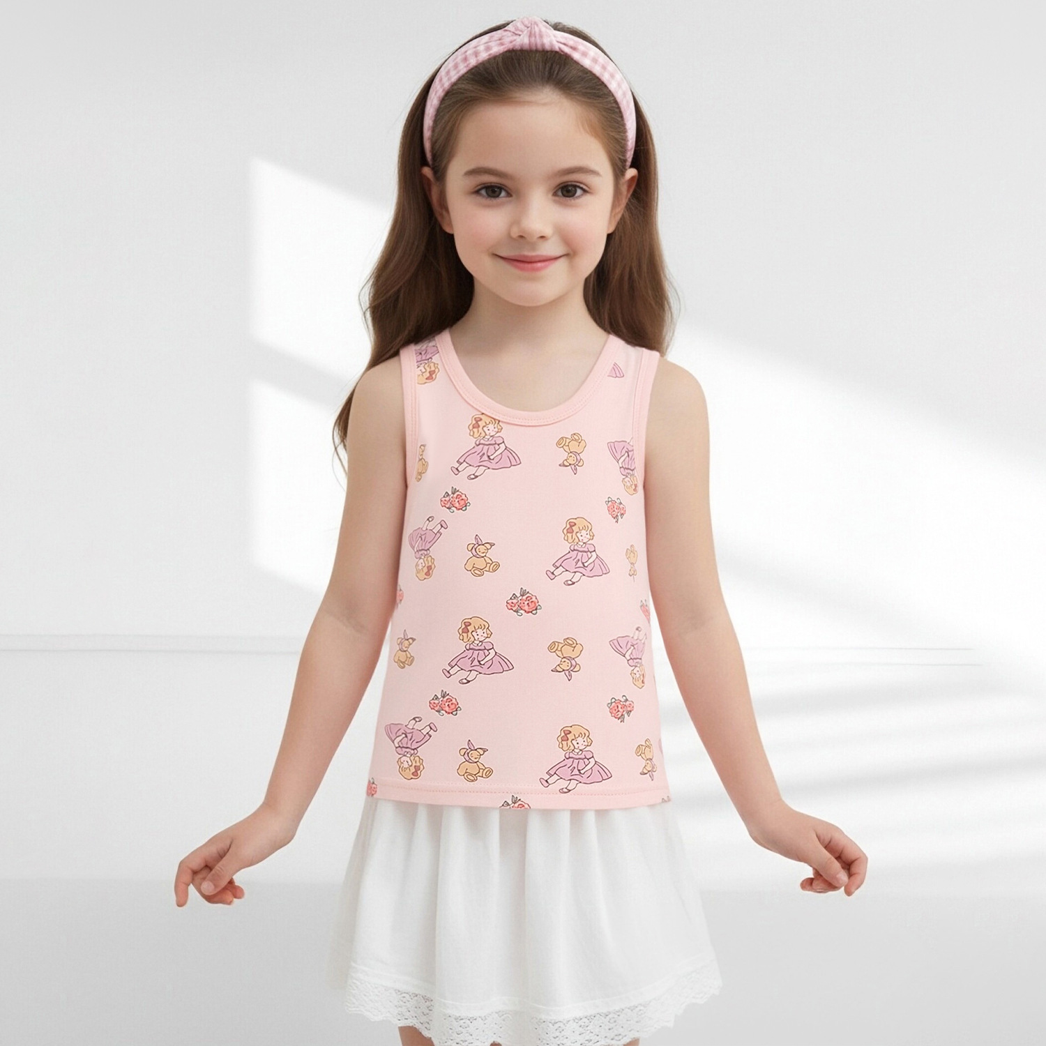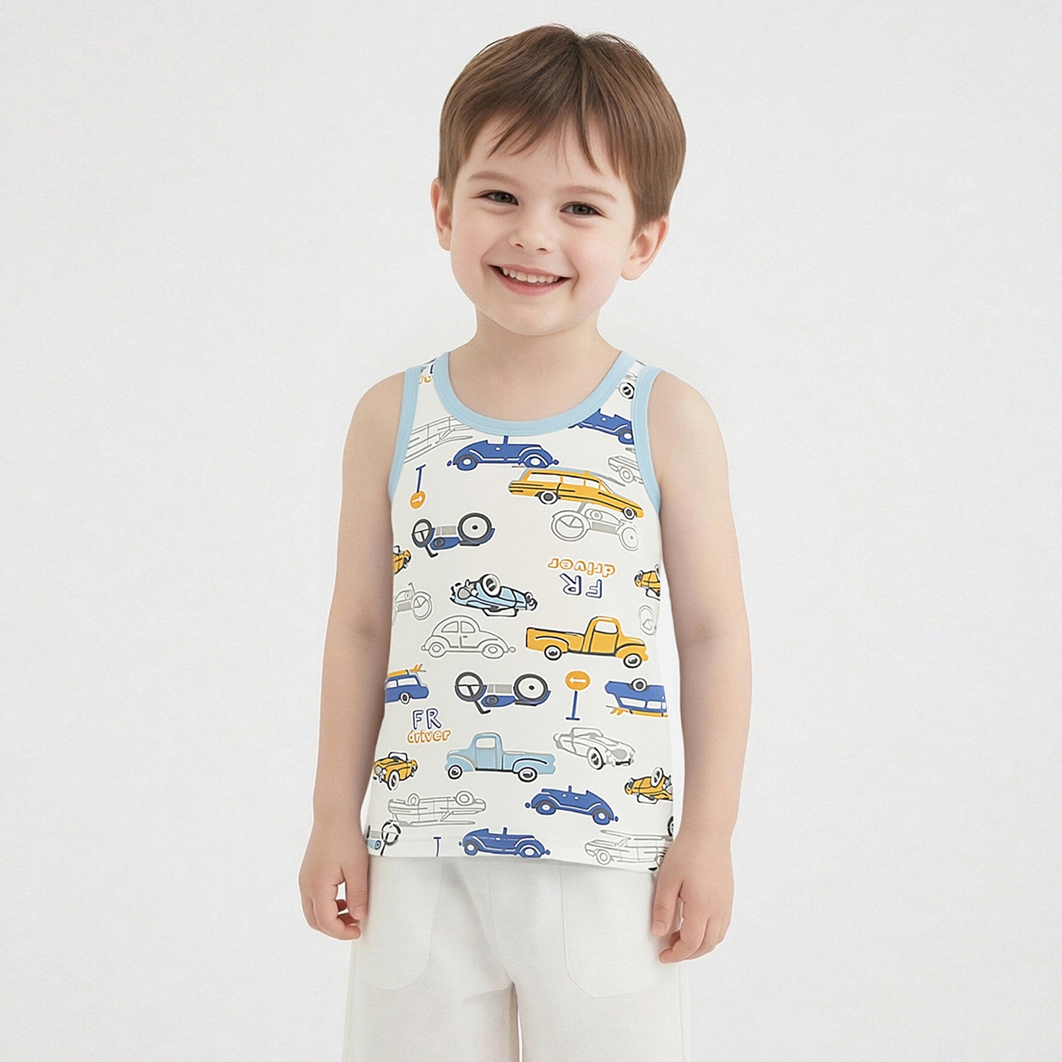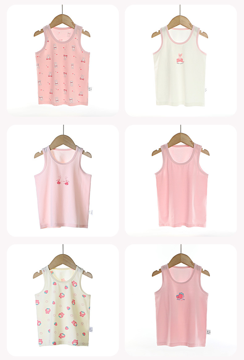 봄철 아동용 순면 조끼, 남아 여아용 만화 캐릭터 베이스 조끼, 라이크라 면 고탄력 사계절 이너웨어 조끼스토어 가기