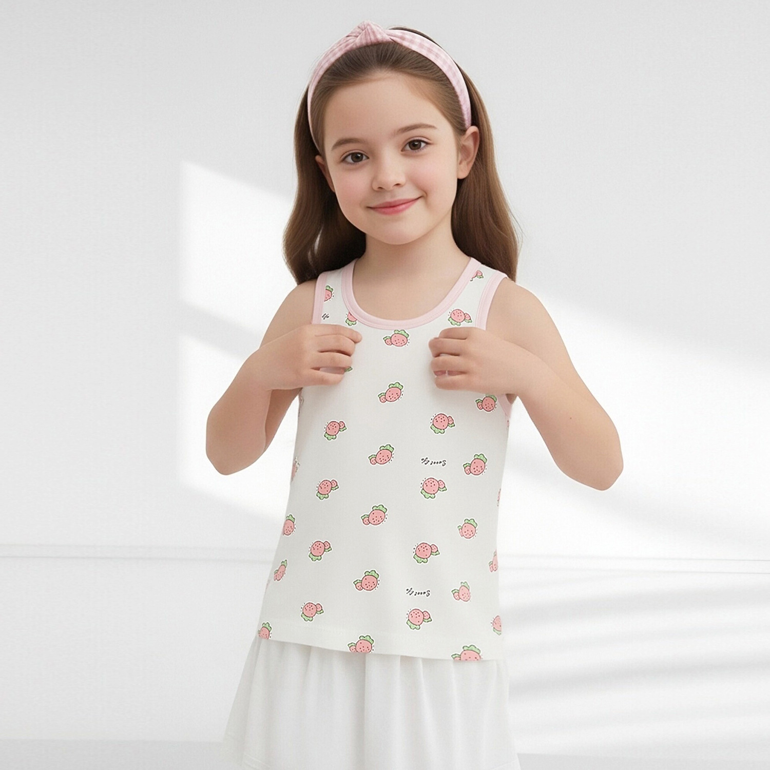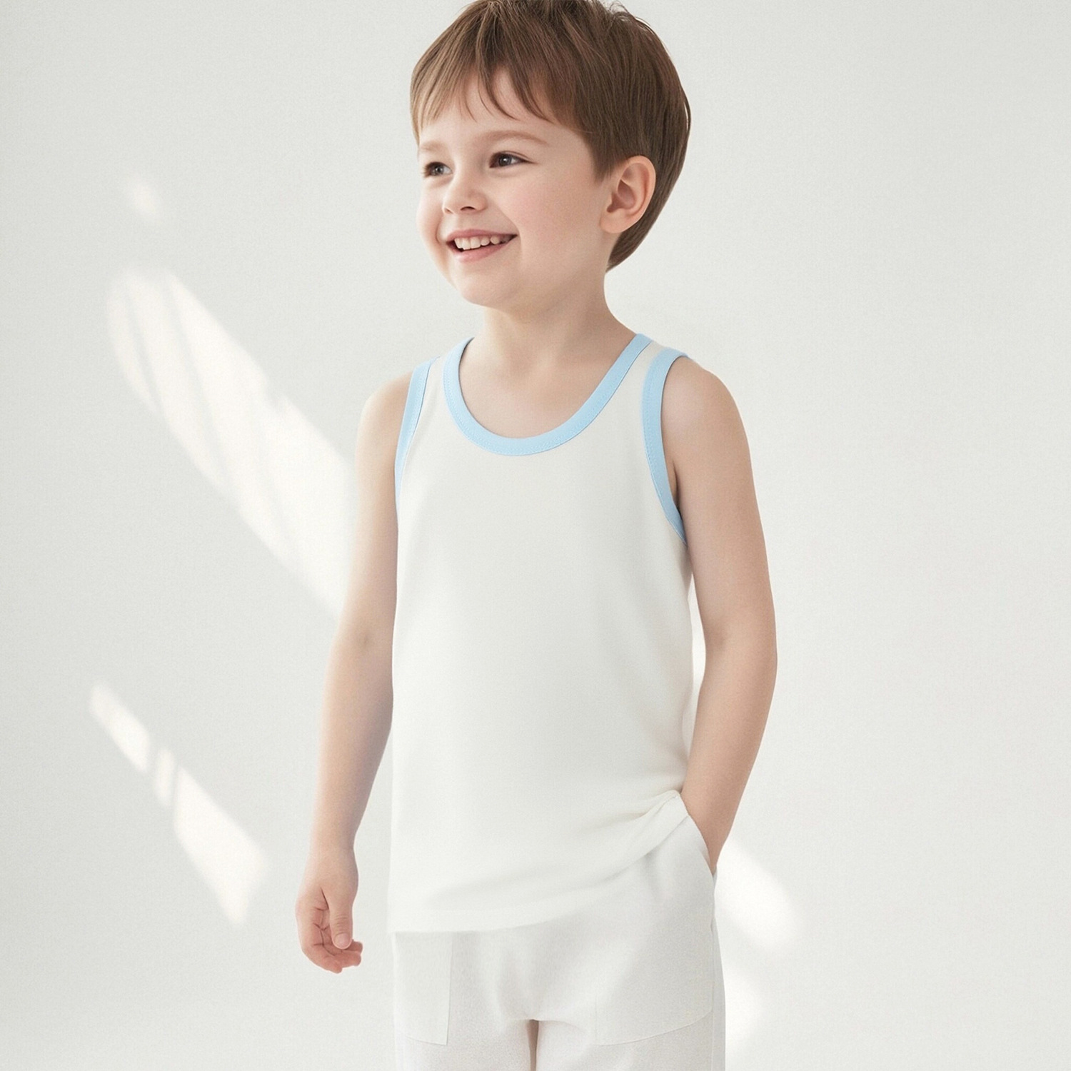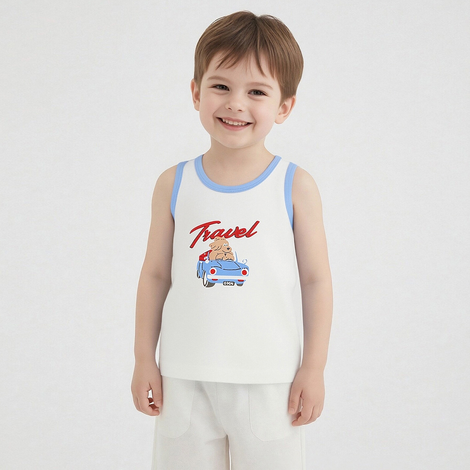봄철 아동용 순면 조끼, 남아 여아용 만화 캐릭터 베이스 조끼, 라이크라 면 고탄력 사계절 이너웨어 조끼스토어 가기