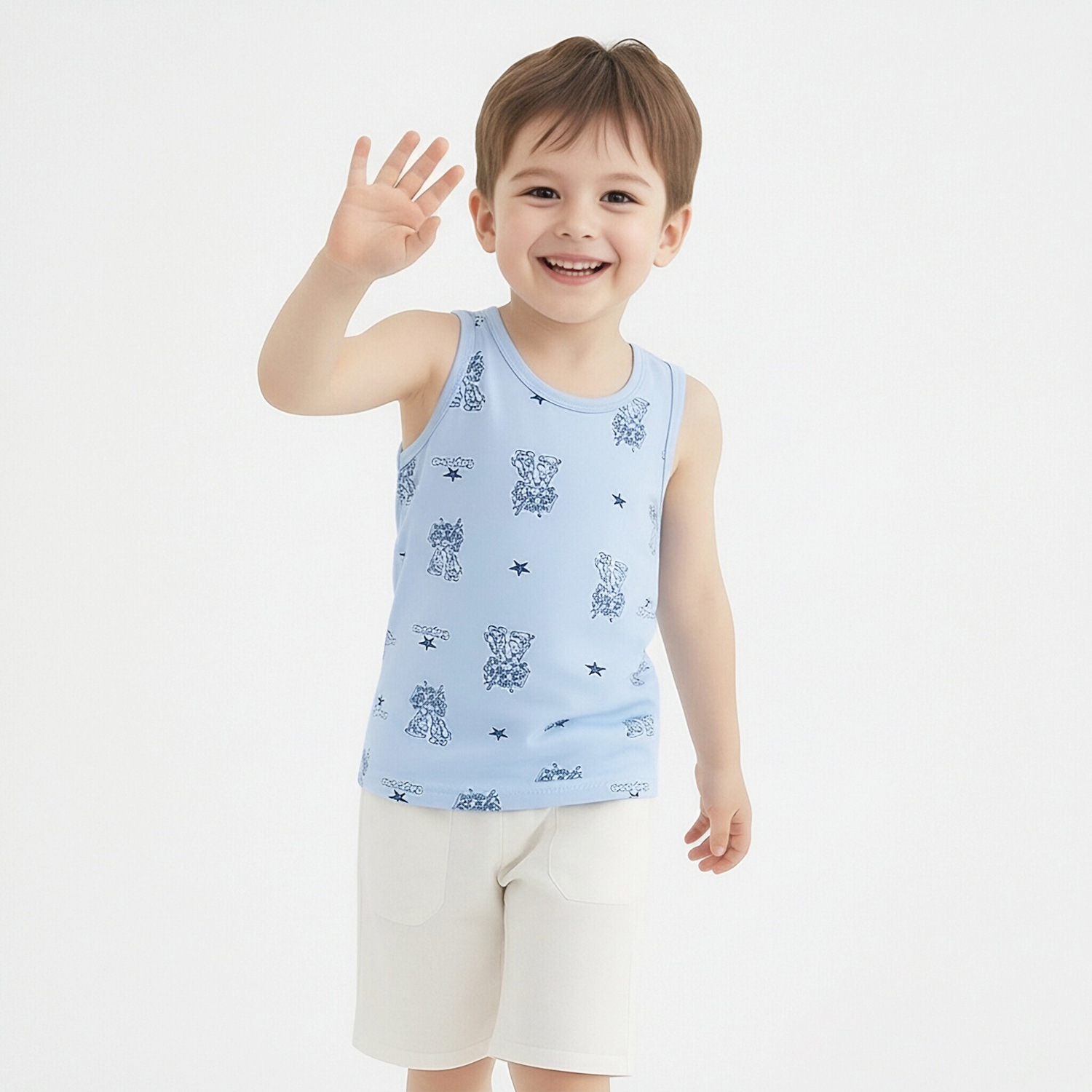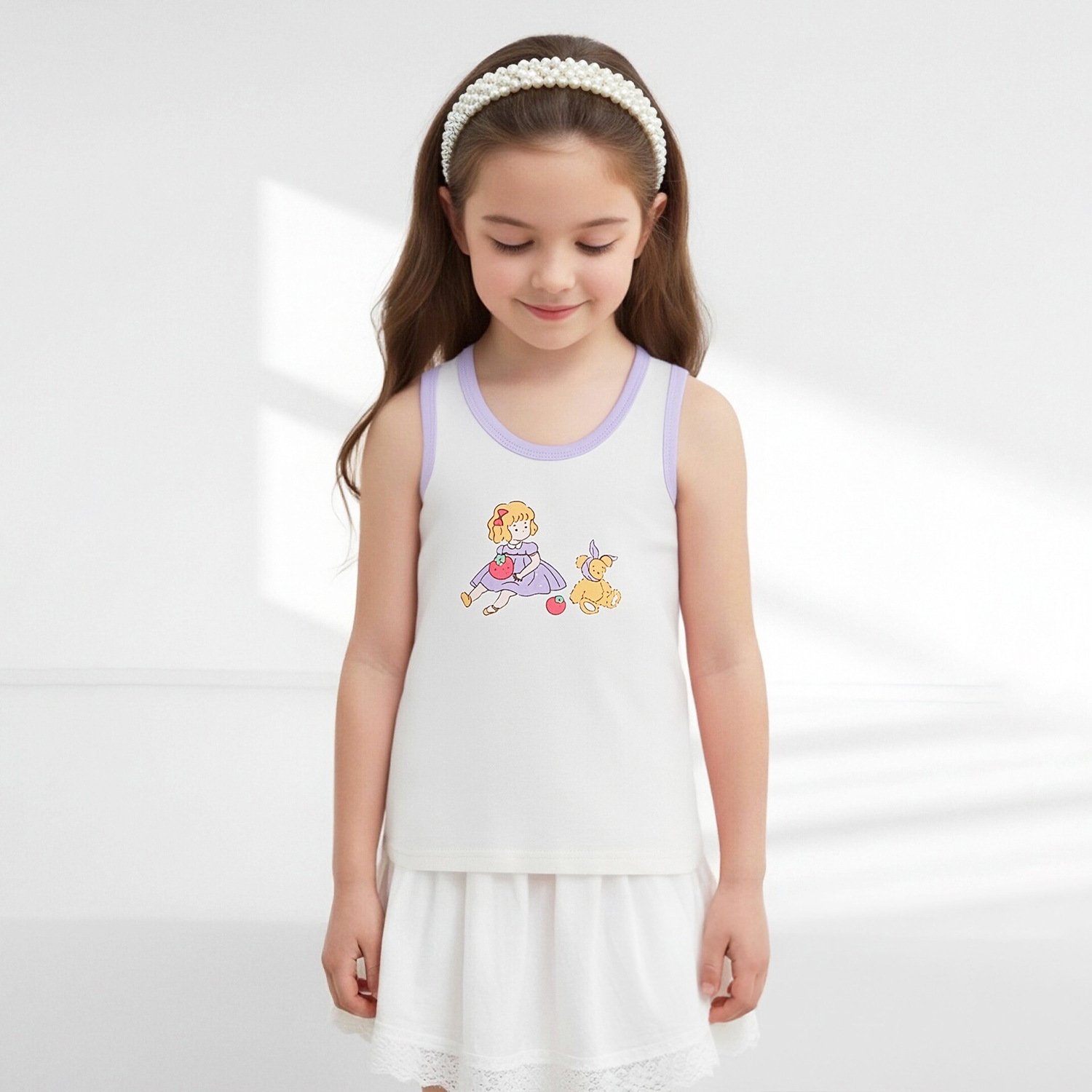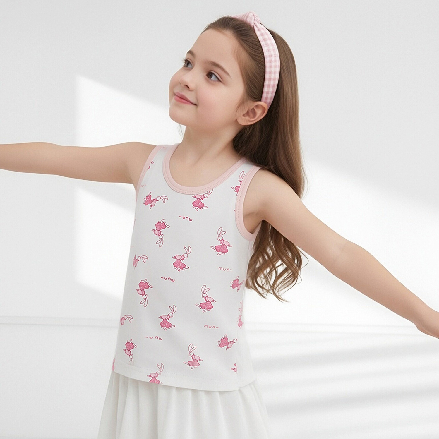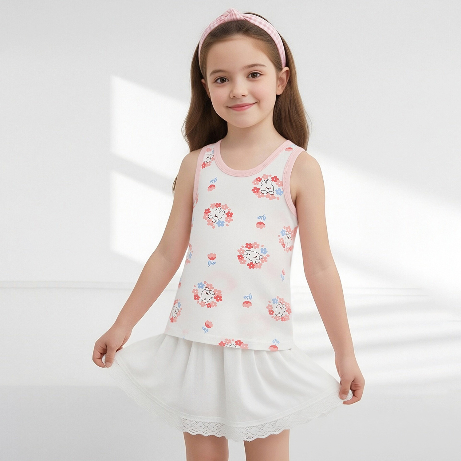 봄철 아동용 순면 조끼, 남아 여아용 만화 캐릭터 베이스 조끼, 라이크라 면 고탄력 사계절 이너웨어 조끼스토어 가기