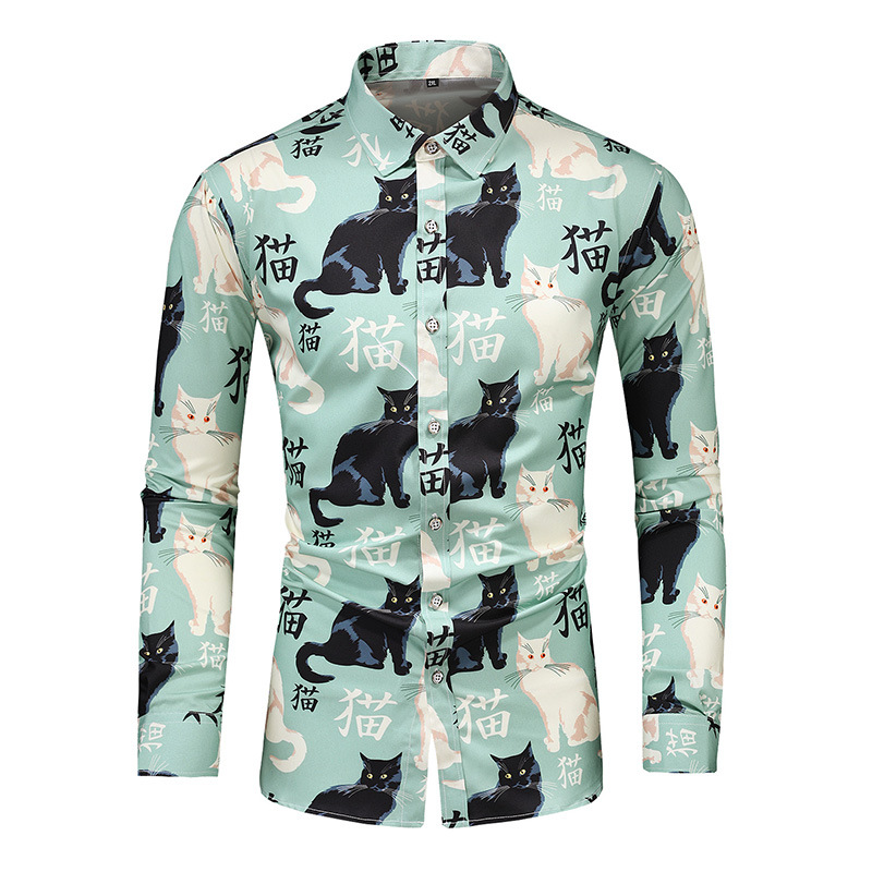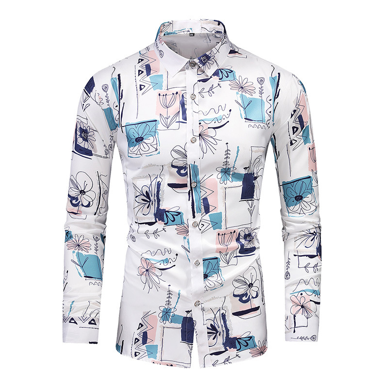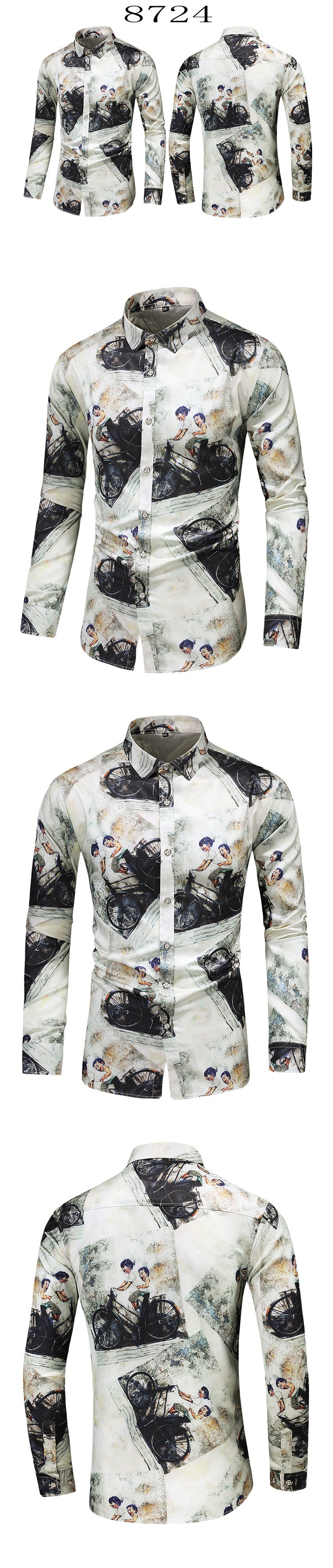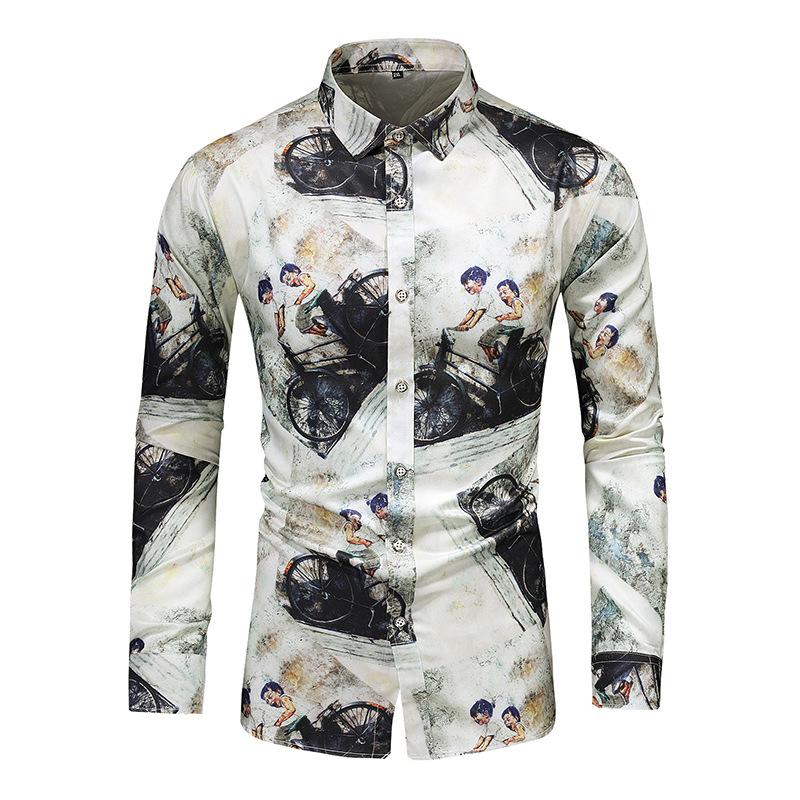 신상 남성 긴팔 셔츠 청소년 프린트 셔츠 봄 가을 캐주얼 남성복 대형 사이즈 긴팔 셔츠