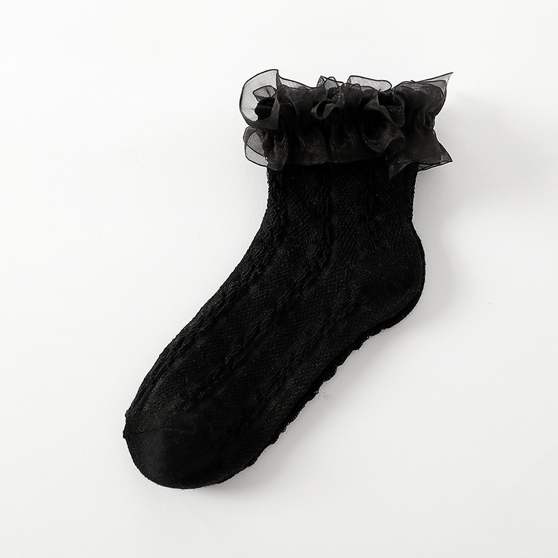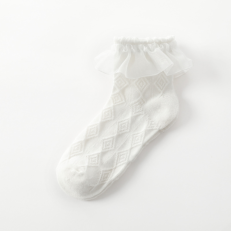 봄과 여름 얇은 여아 양말 면 양말 통기성 메쉬 짧은 양말 중대형 어린이 학생 공주 레이스 어린이 중간 튜브 양말