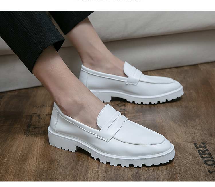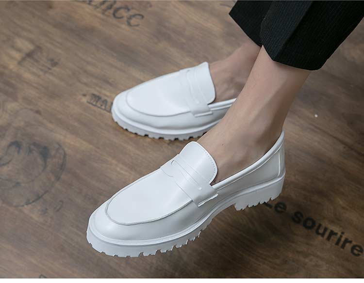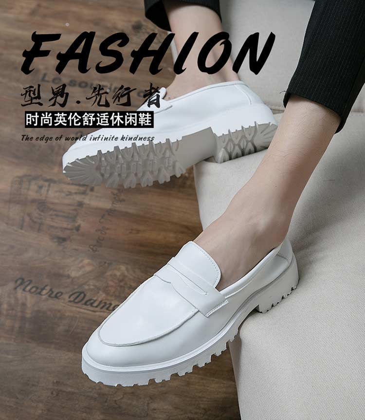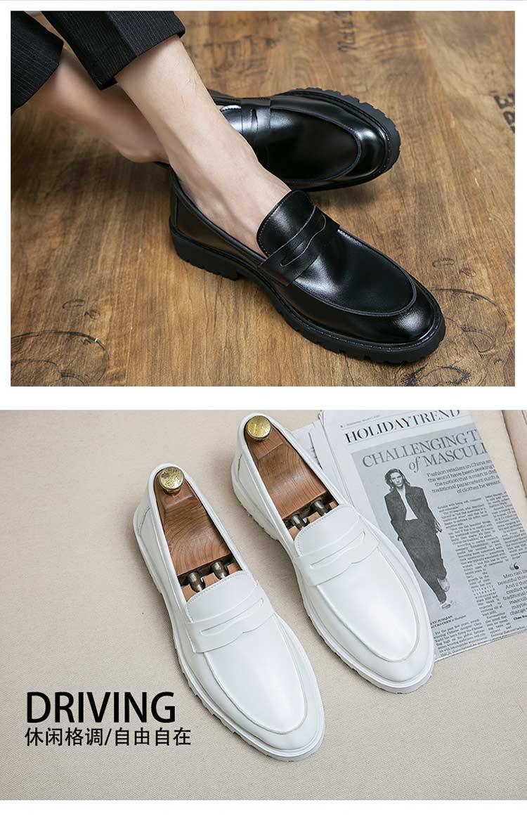 尖头休闲皮鞋男士商务正装懒人夜店发型师豆豆鞋男英伦白色潮鞋子