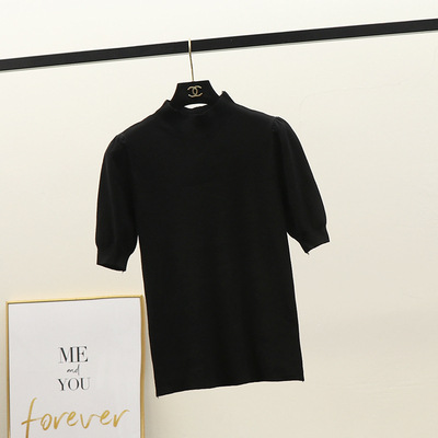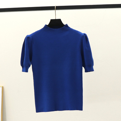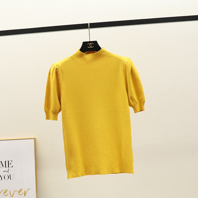 2022 새로운 여성 의류 틈새 니트웨어 반팔 내부 슬림핏 탑 하프 터틀넥 스웨터 베이스 셔츠 여성 가을과 겨울스토어 가기