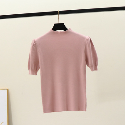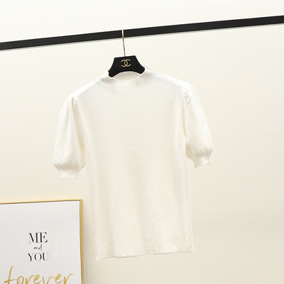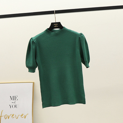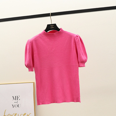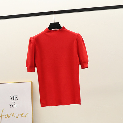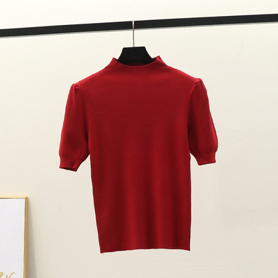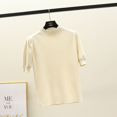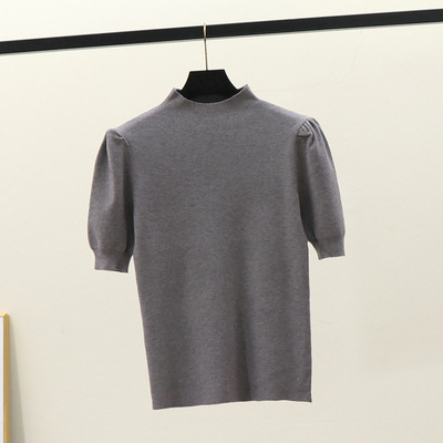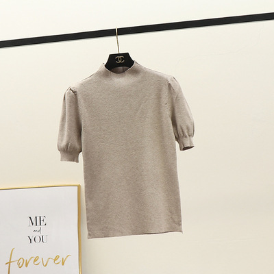 2022 새로운 여성 의류 틈새 니트웨어 반팔 내부 슬림핏 탑 하프 터틀넥 스웨터 베이스 셔츠 여성 가을과 겨울