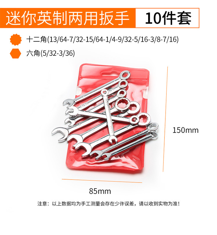 미니 마이크로 얇은 렌치, 매화형 개방형, 이중 용도, 미터법 및 인치 단위, 10종 세트, 자동차 수리 도구, 자동차 수리 전용스토어 가기