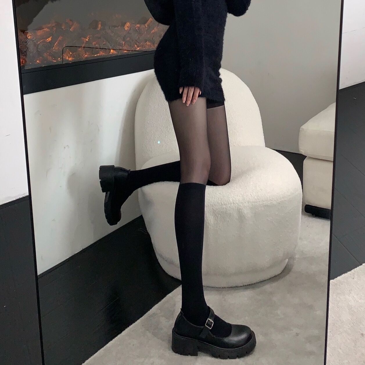 흰색 스플라이싱 스타킹 일본 가짜 송아지 양말 JK 양말 무릎 위 양말 섹시한 블랙 프리 컷 팬티 스타킹스토어 가기