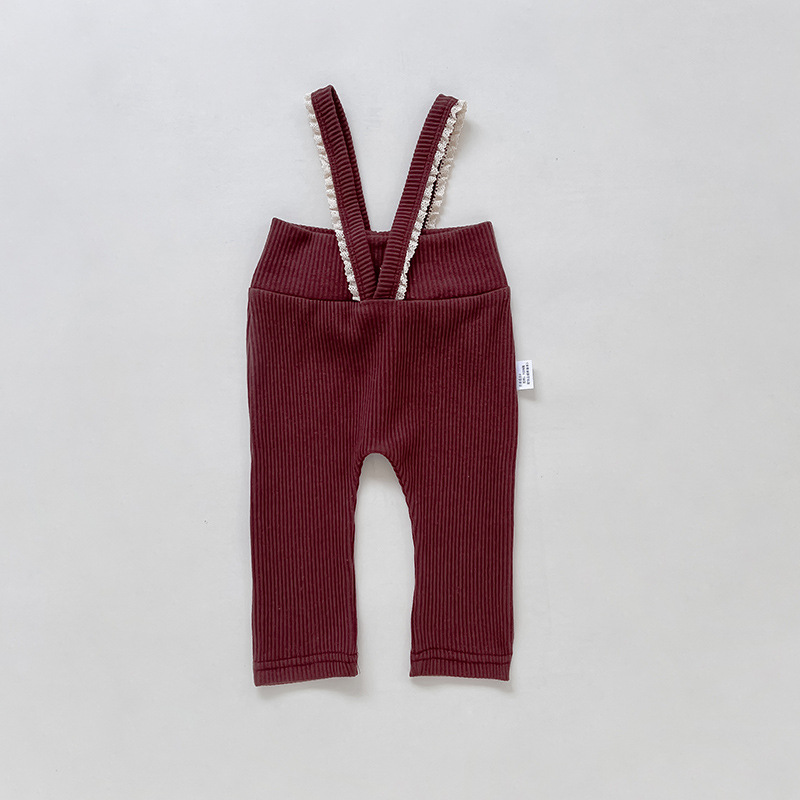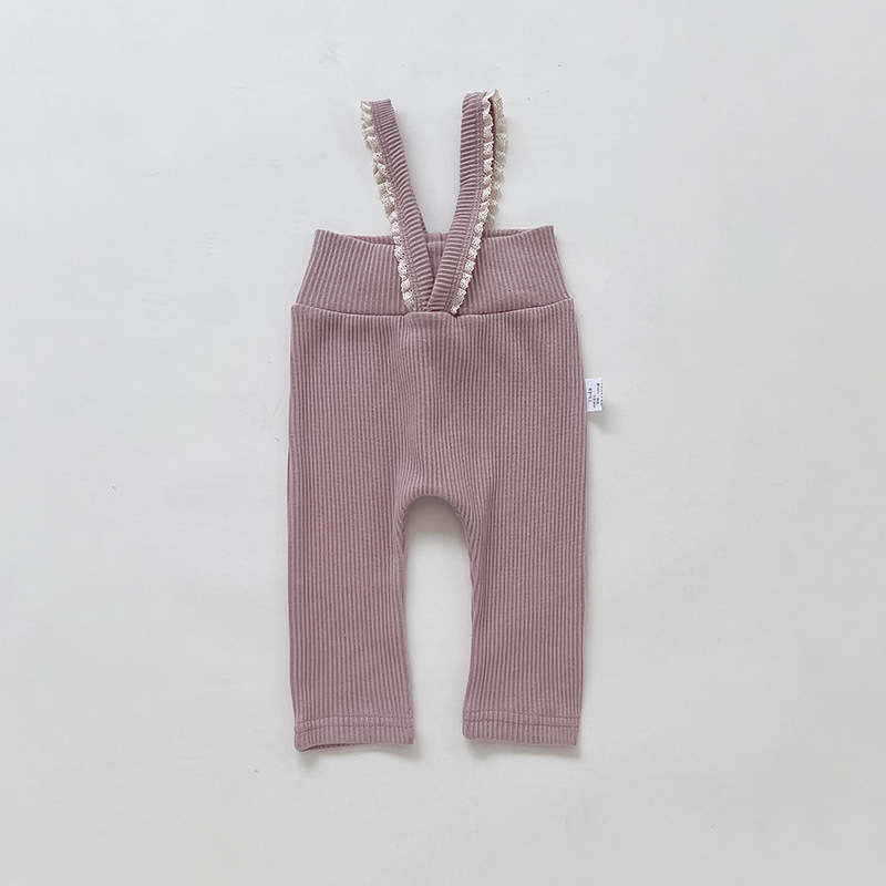 유아 및 유아 한국 스타일 높은 탄성 핏 스트랩 팬츠 2024 0-3 세 소녀를위한 봄과 가을 편안한 높은 허리 바지