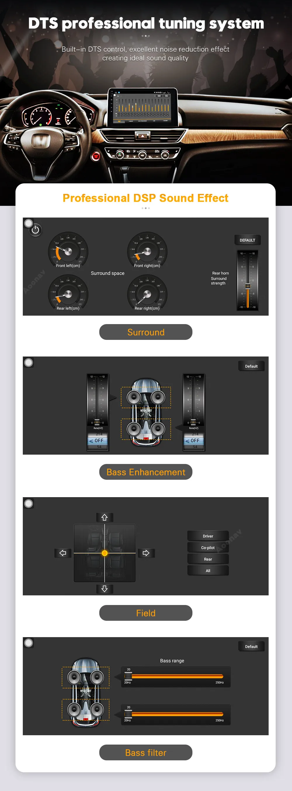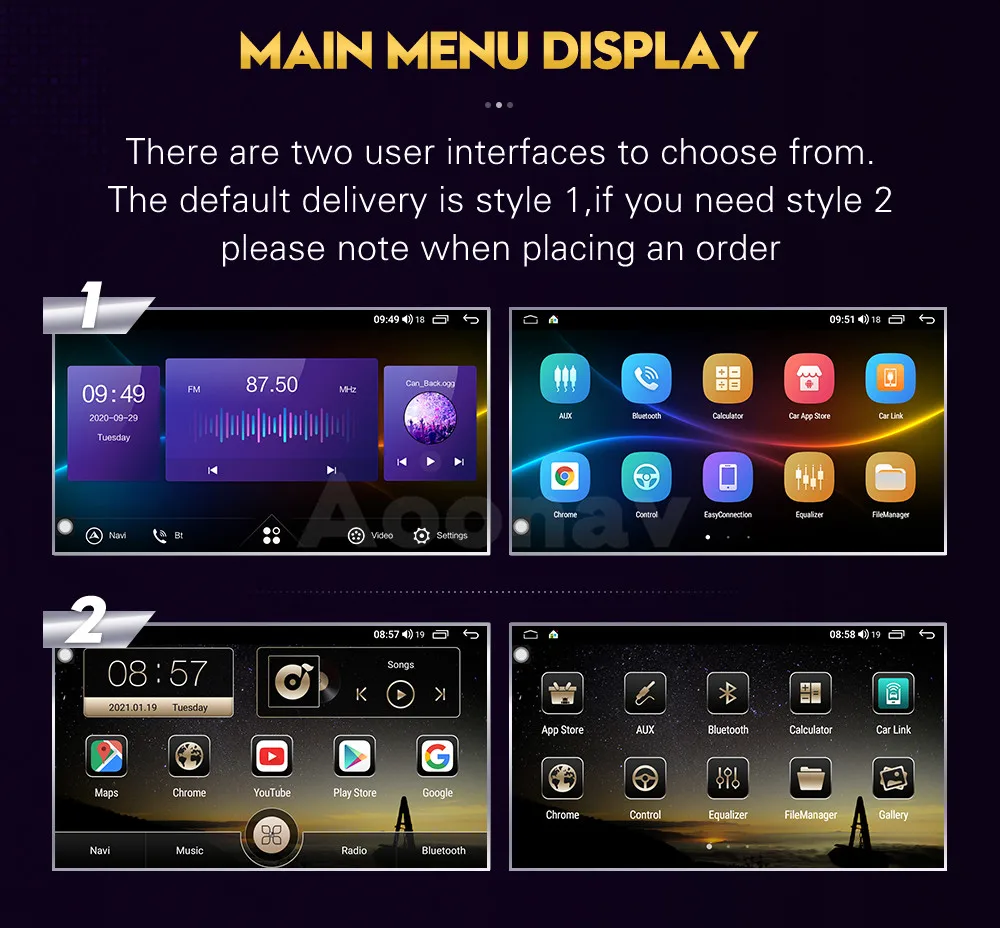 Android 导航就像一部 Android 手机。您可以通过软件商店中选择的导航应用安装安卓应用和GPS导航。它还保留了大多数 OEM 功能。其他配件,如DVR、OBD、后置摄像头、360°摄像头等。