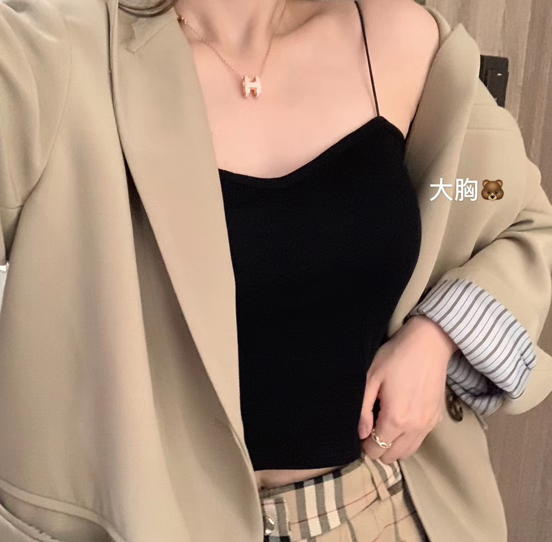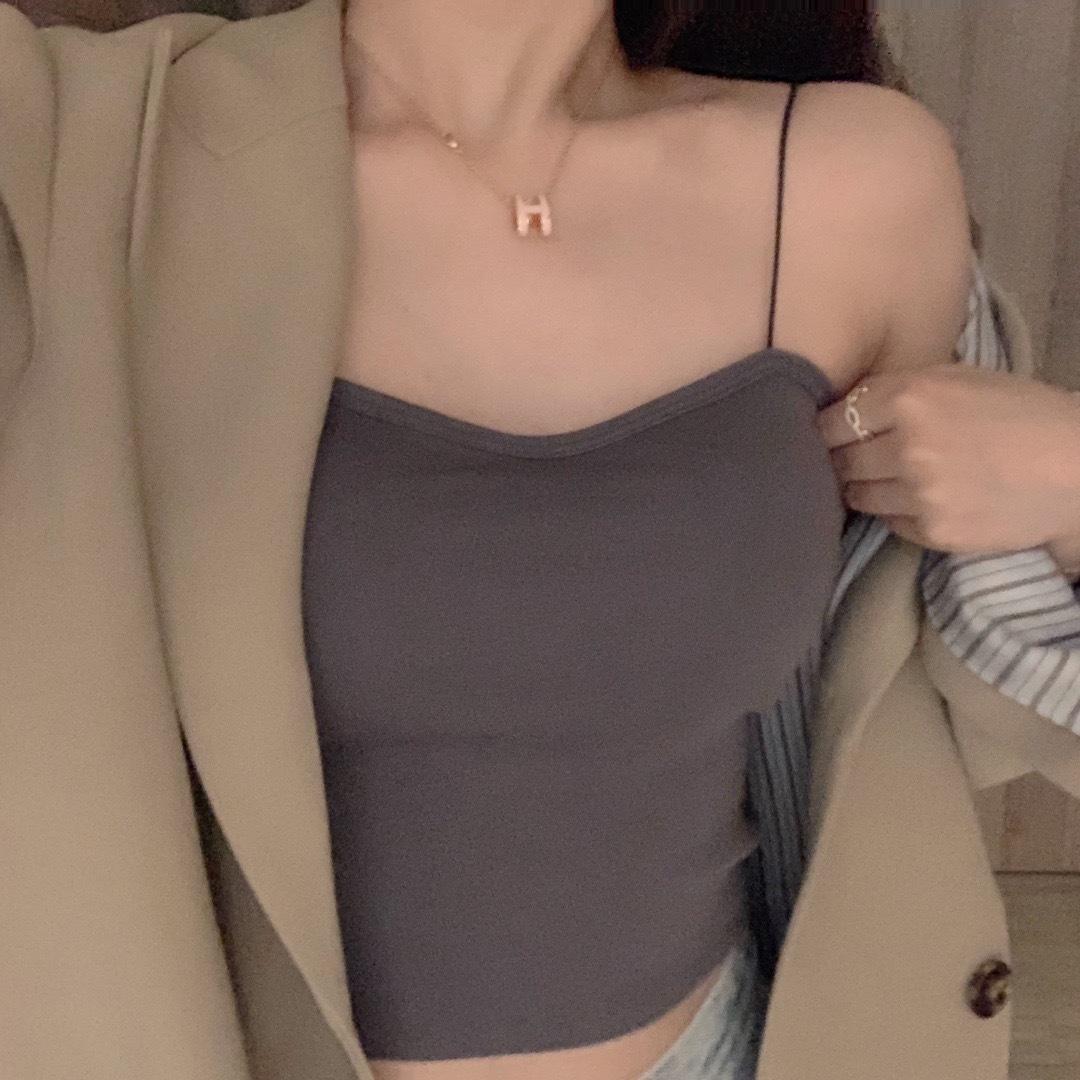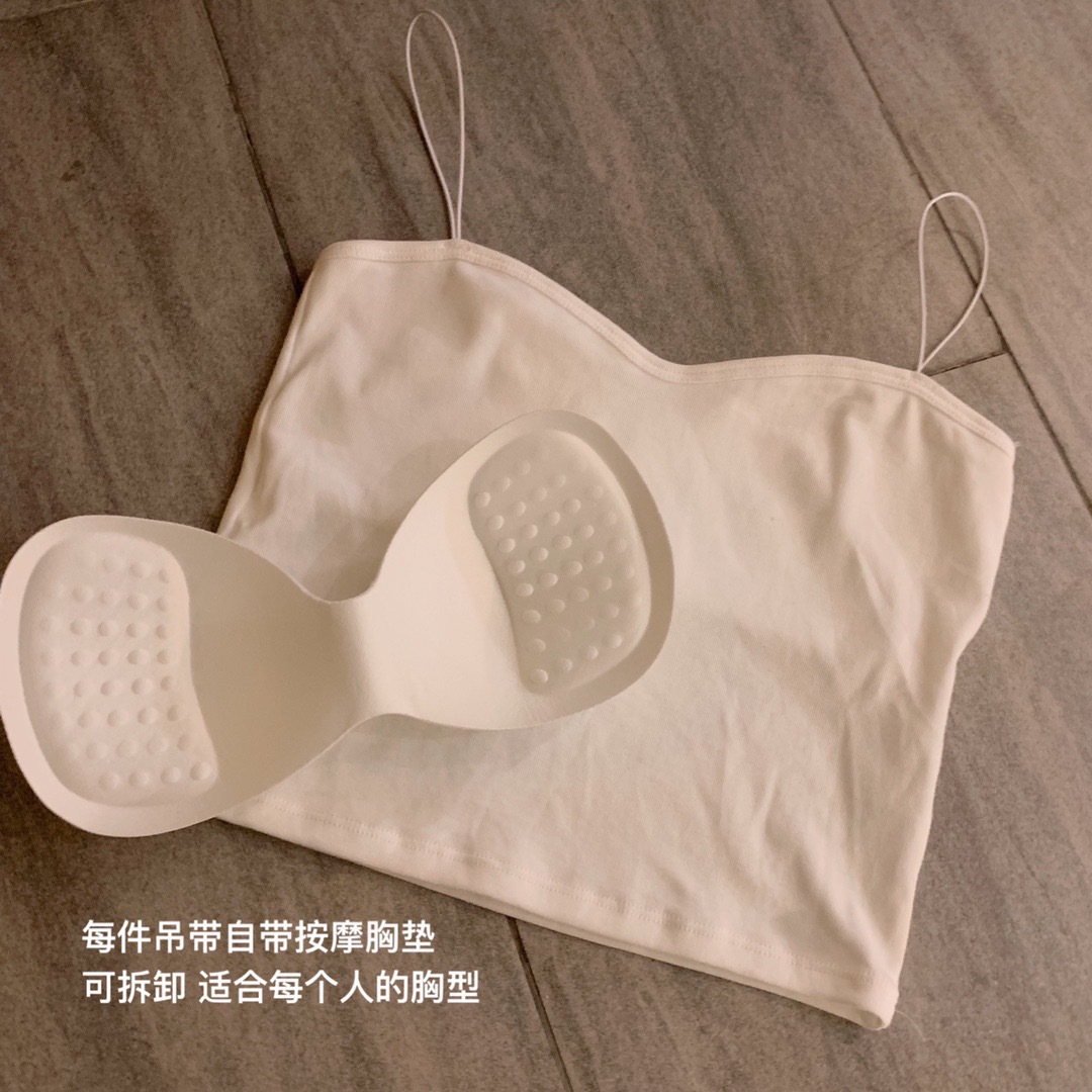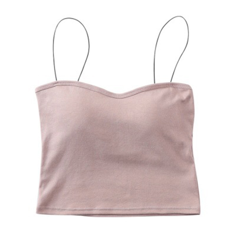 여자의 아름다운 등 조끼 튜브 탑 가슴 패드 분리 가능한 외부 착용 내부 실 면 포장 가슴 작은 유화 여성용 니트 슬링