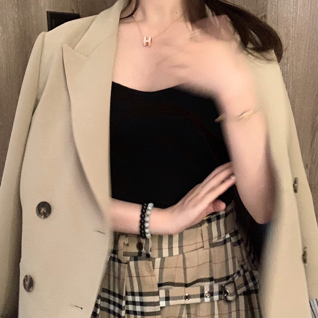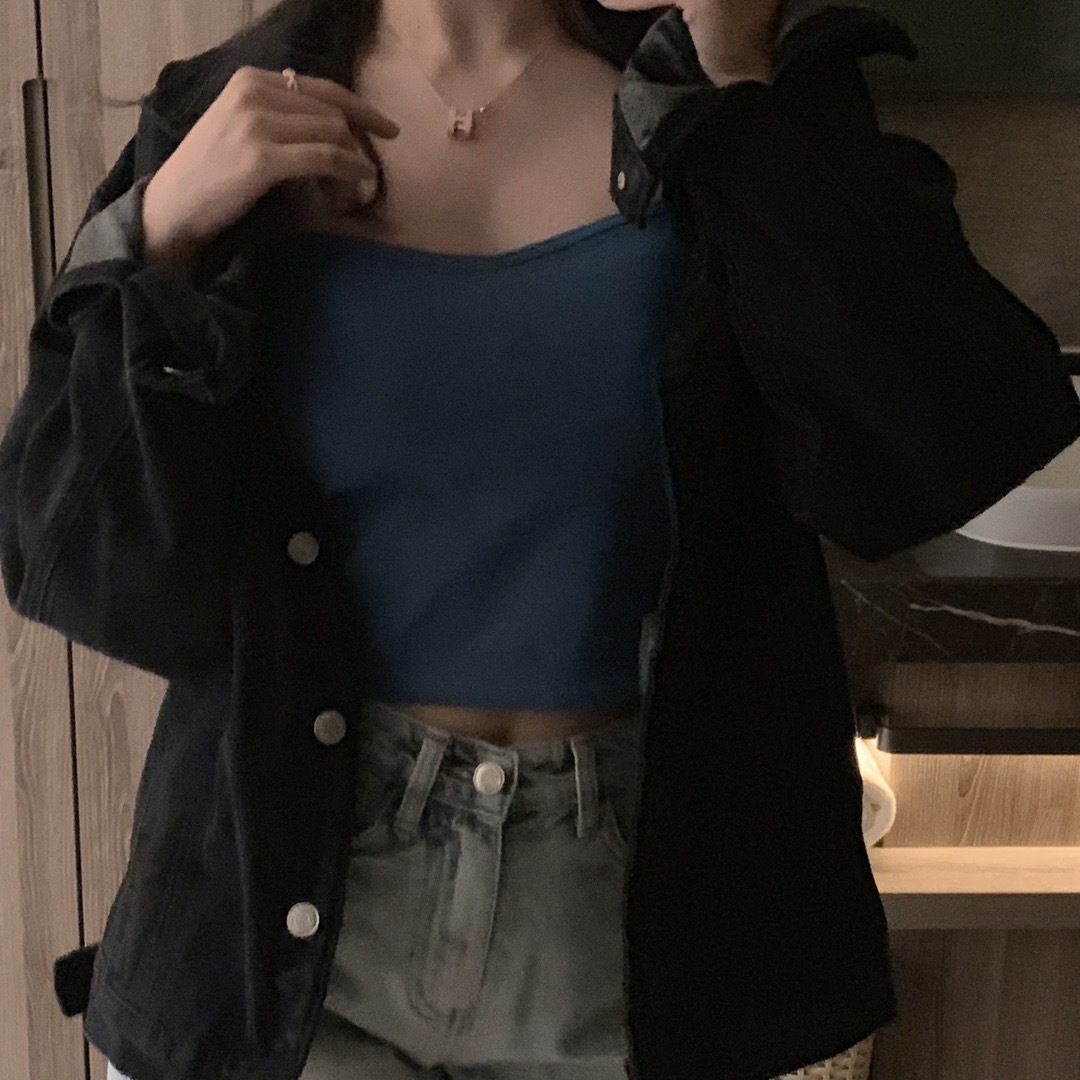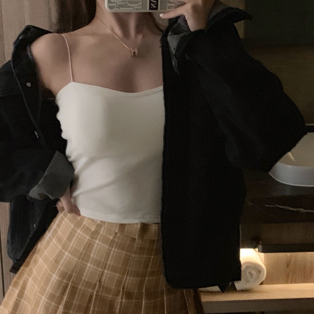 여자의 아름다운 등 조끼 튜브 탑 가슴 패드 분리 가능한 외부 착용 내부 실 면 포장 가슴 작은 유화 여성용 니트 슬링