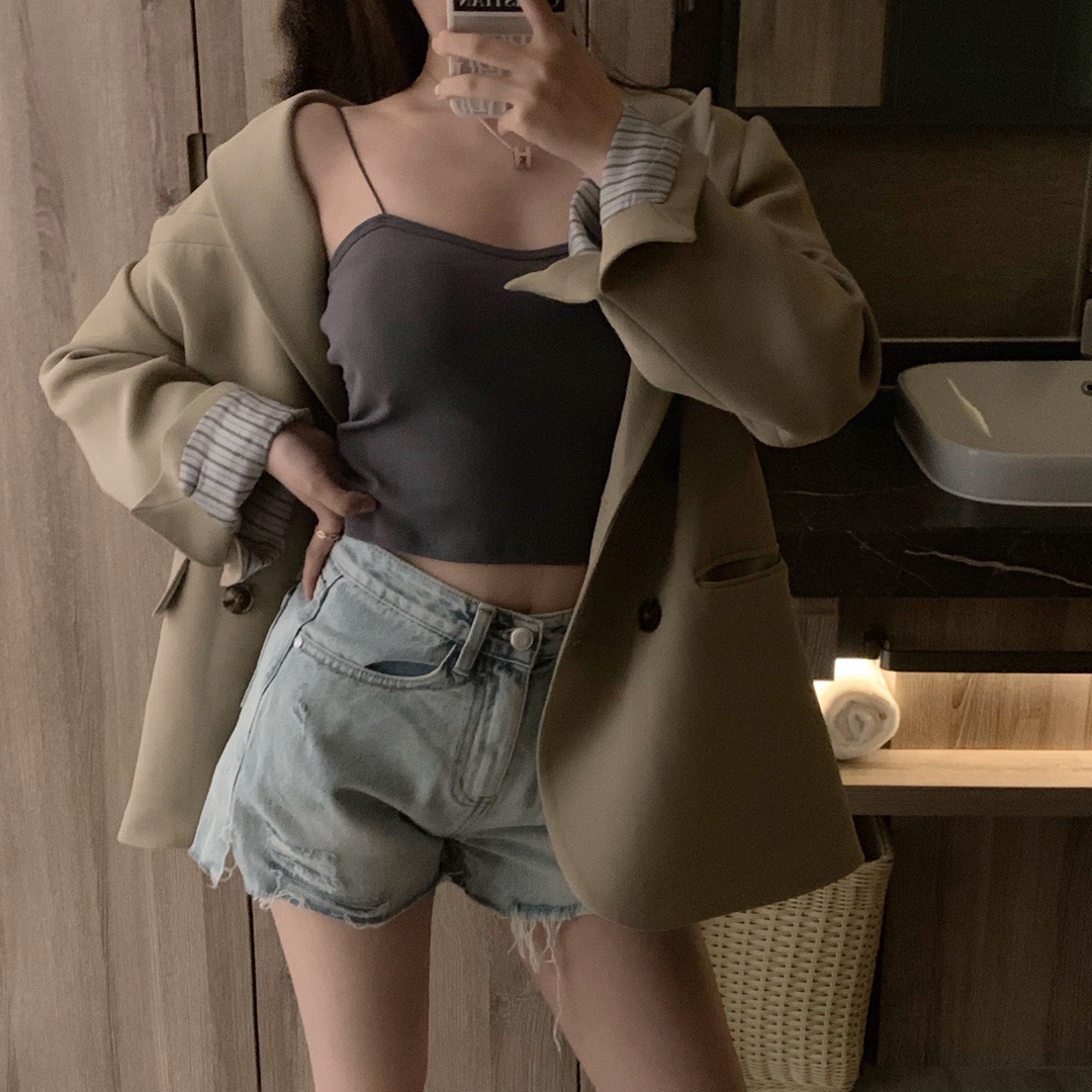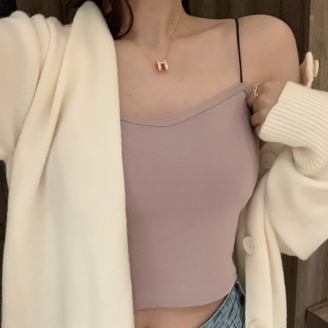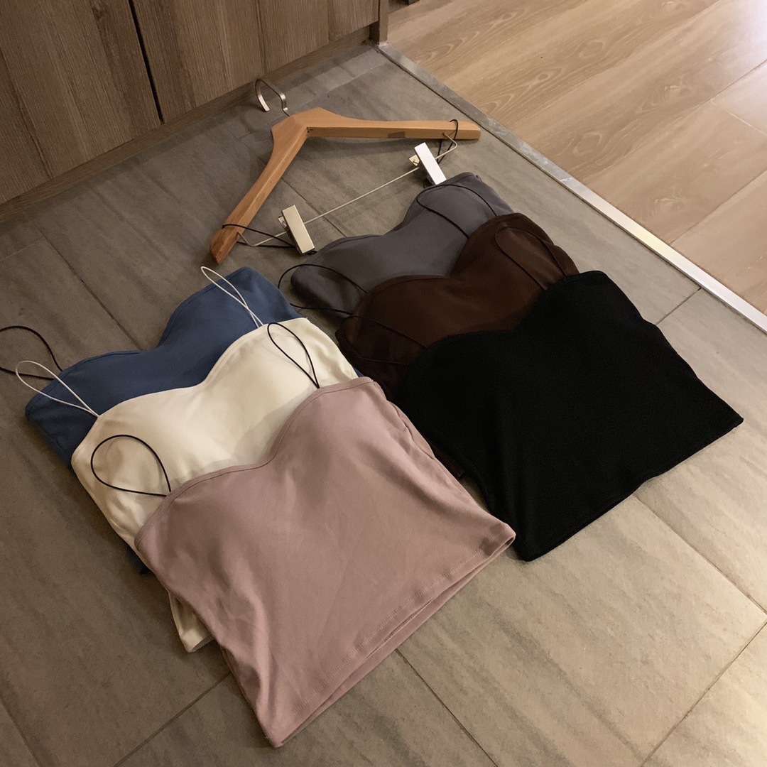 여자의 아름다운 등 조끼 튜브 탑 가슴 패드 분리 가능한 외부 착용 내부 실 면 포장 가슴 작은 유화 여성용 니트 슬링스토어 가기