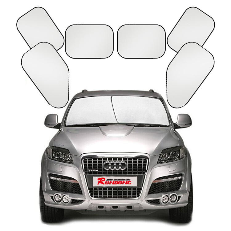 本产品材质为涂银布,能有效的反射太阳光线,更有效的对车内进行隔热。