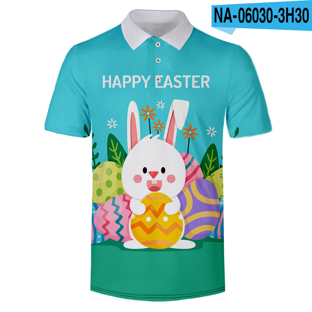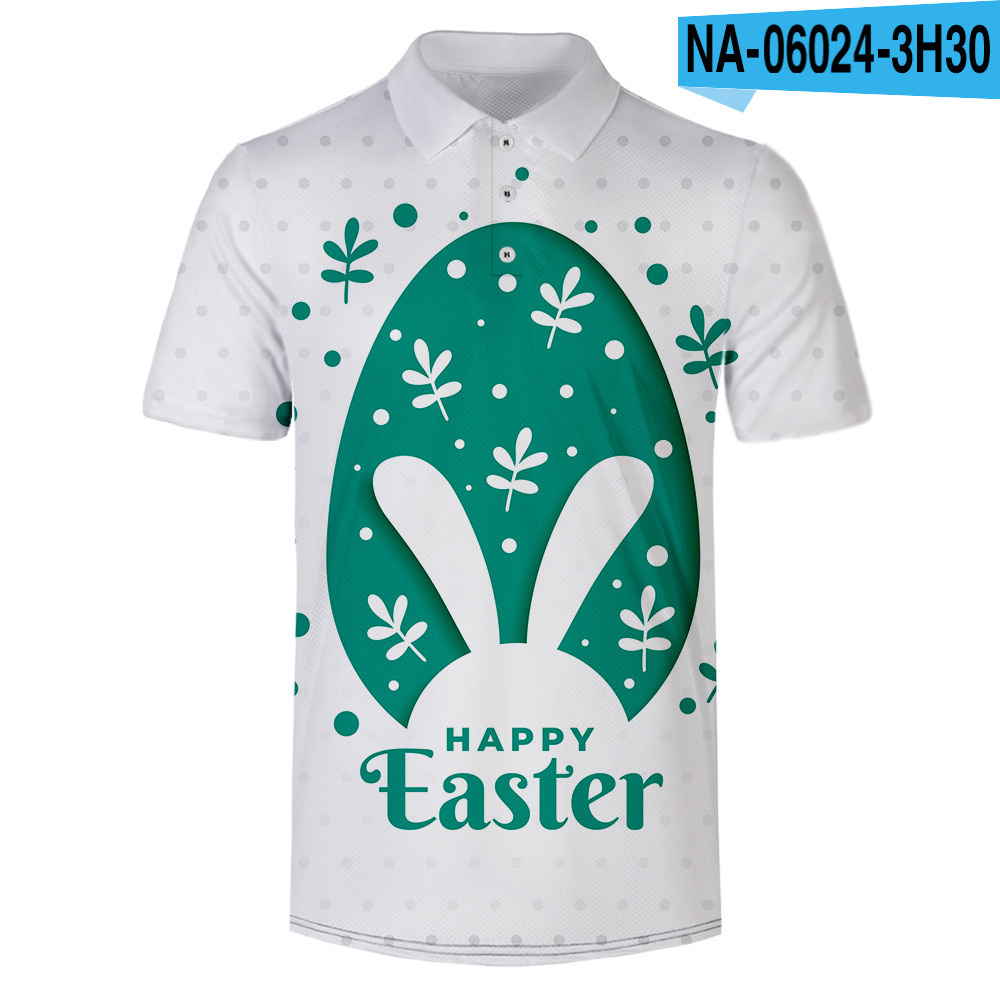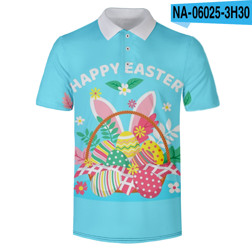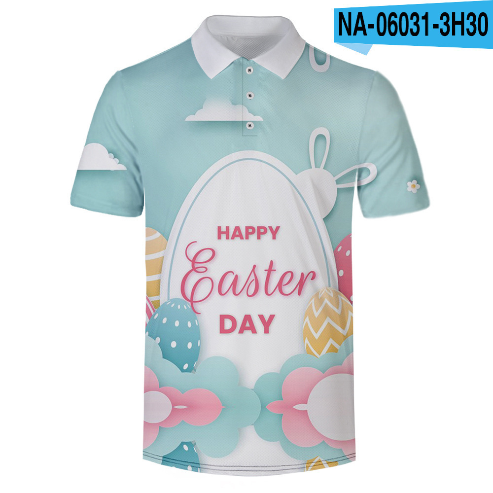 새로운 프로모션 크로스 보더 웨스턴 부활절 성인 어린이 3D 프린트 반팔 골프 셔츠 폴로 셔츠 남성 헤어 세대스토어 가기
