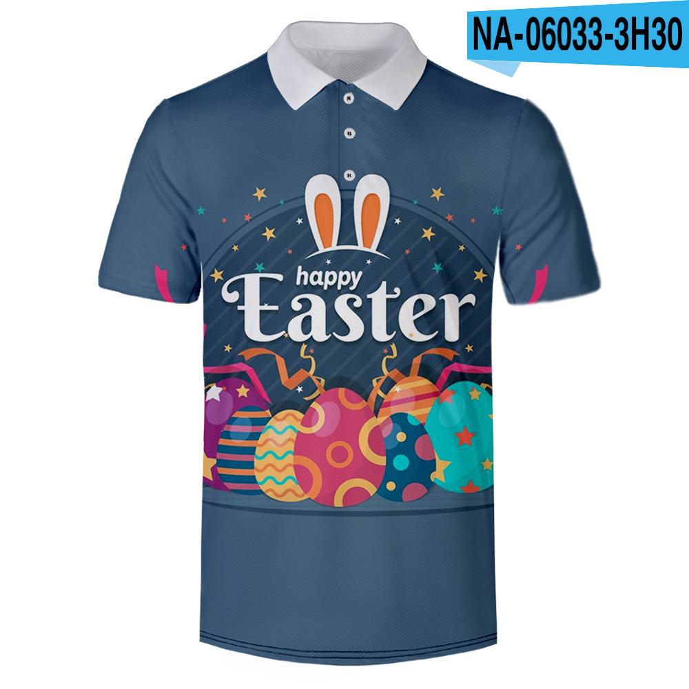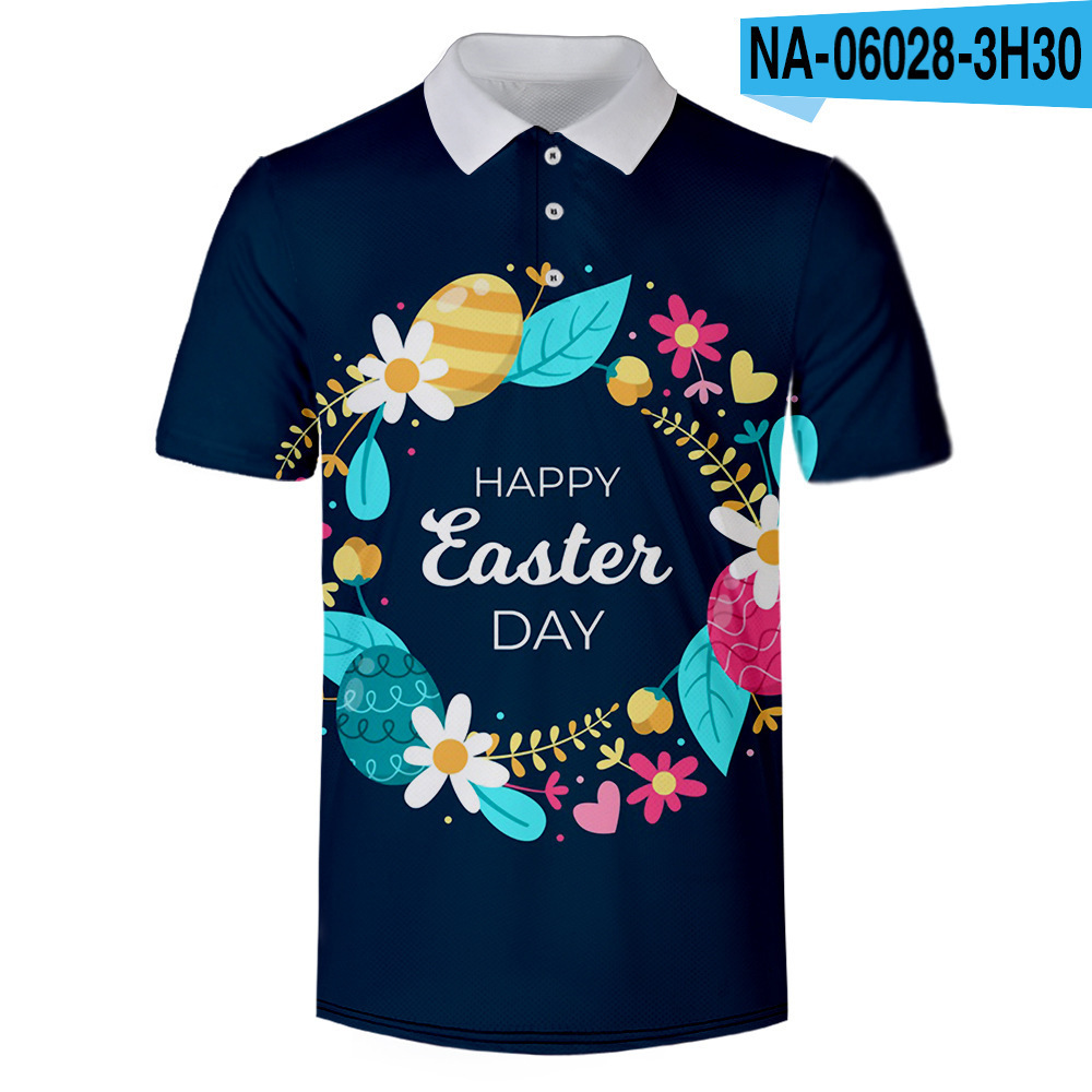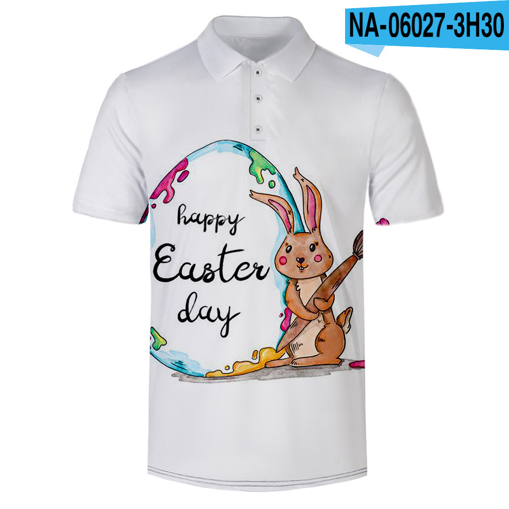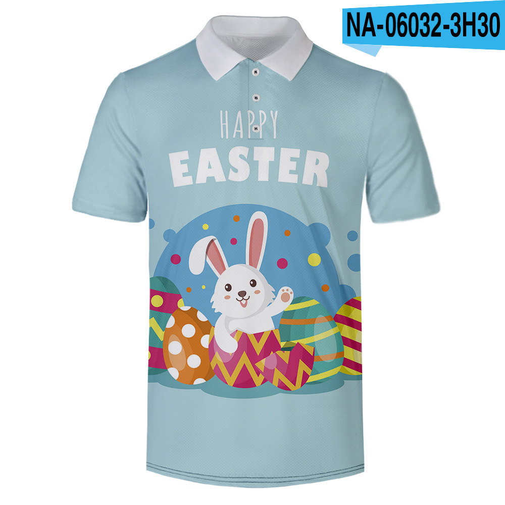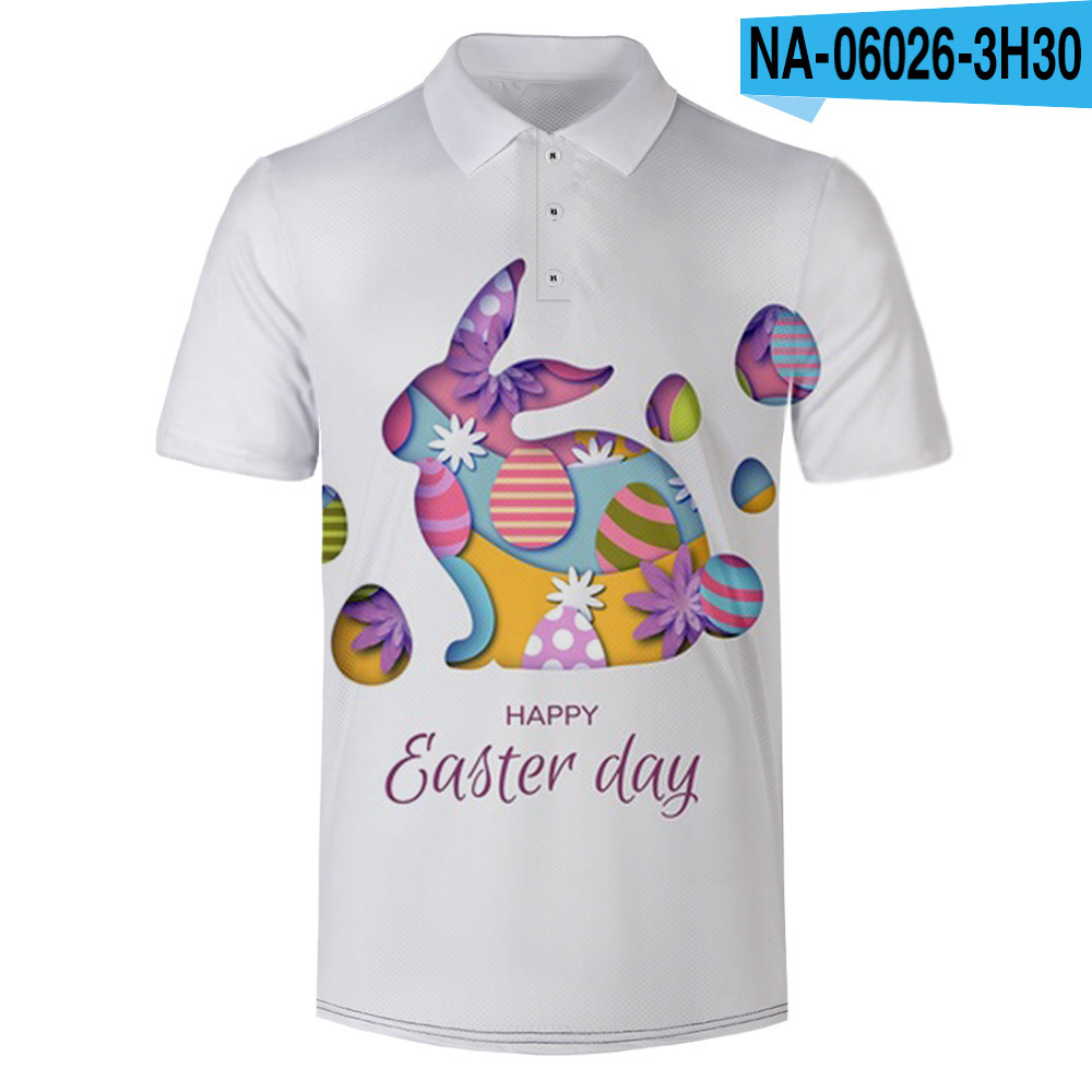 새로운 프로모션 크로스 보더 웨스턴 부활절 성인 어린이 3D 프린트 반팔 골프 셔츠 폴로 셔츠 남성 헤어 세대스토어 가기