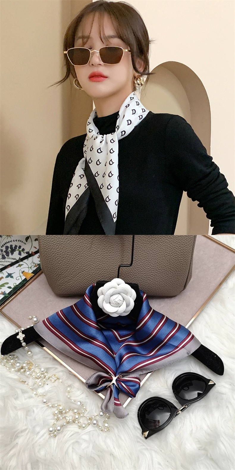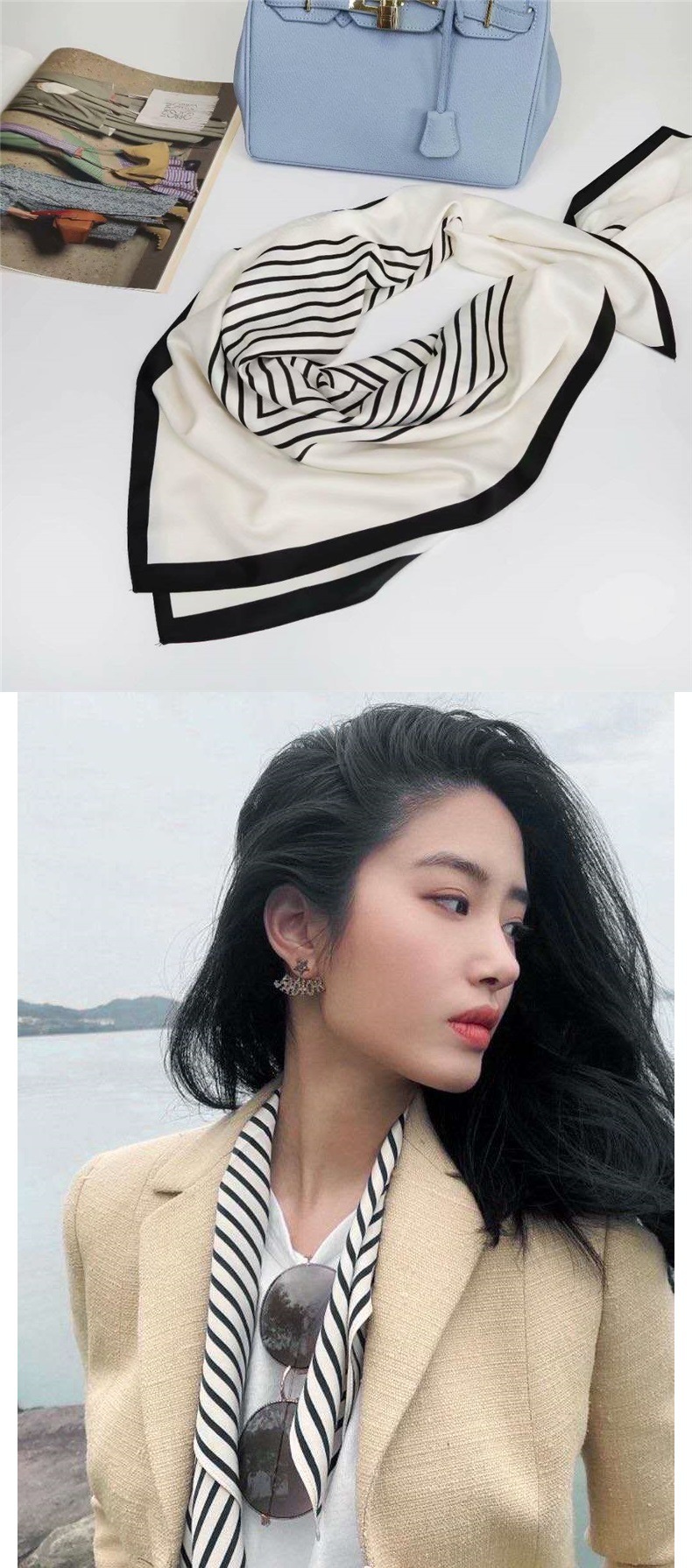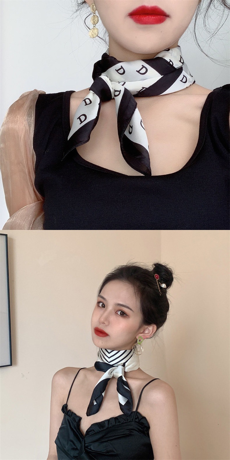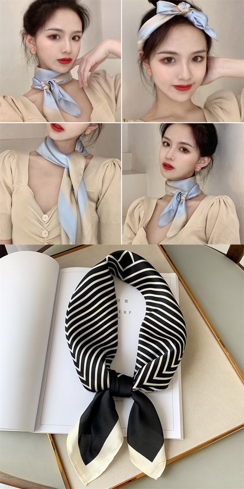 새로운 스타일 기질 작은 향기 스카프 스트라이프 안지아 선리 같은 스타일 스퀘어 스카프 심플 한국 스타일 흑백 전문 소형 스카프스토어 가기