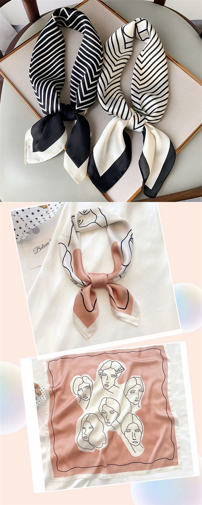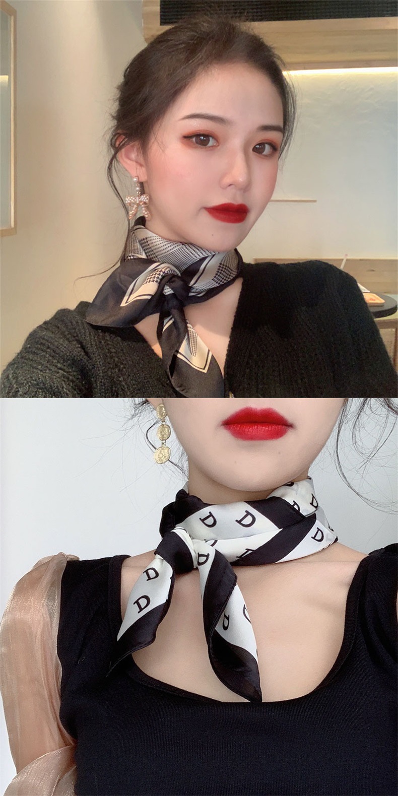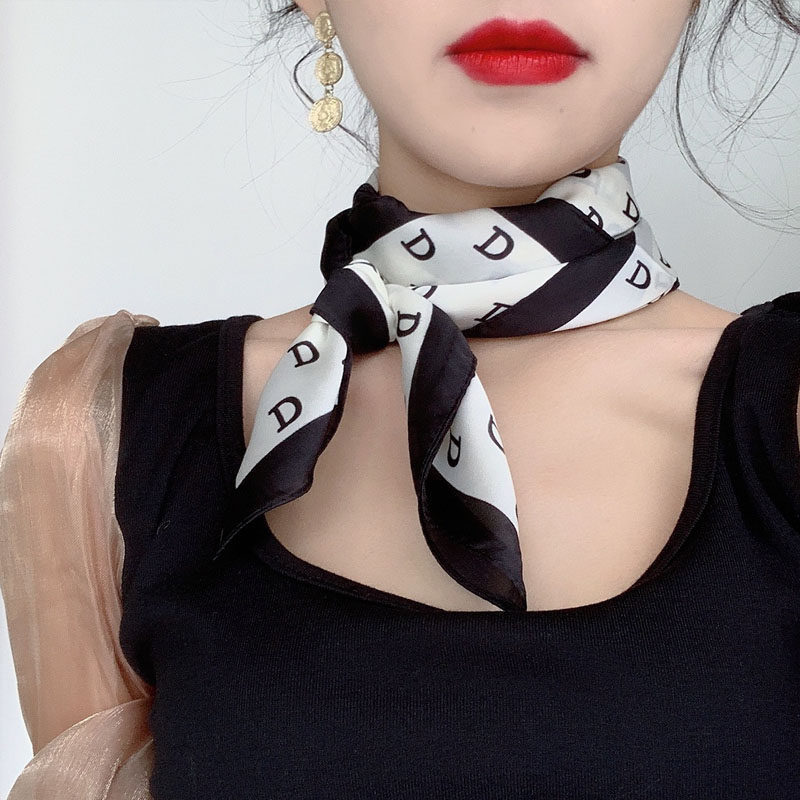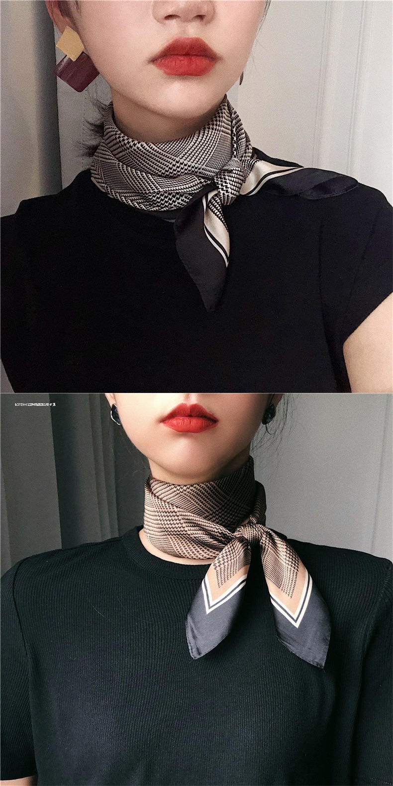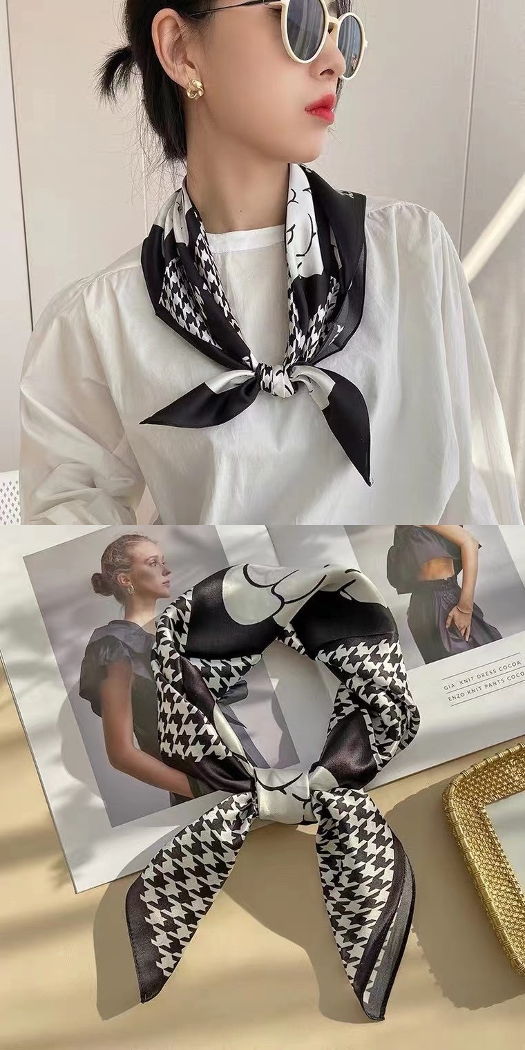새로운 스타일 기질 작은 향기 스카프 스트라이프 안지아 선리 같은 스타일 스퀘어 스카프 심플 한국 스타일 흑백 전문 소형 스카프스토어 가기