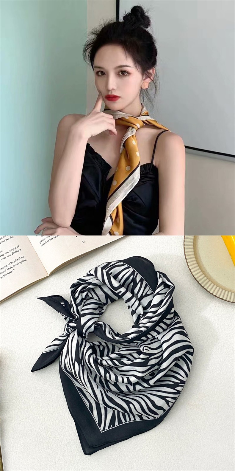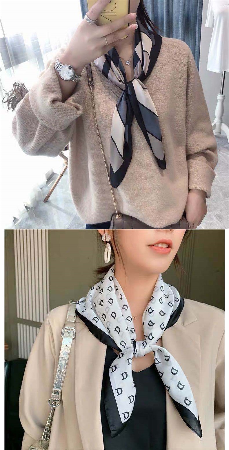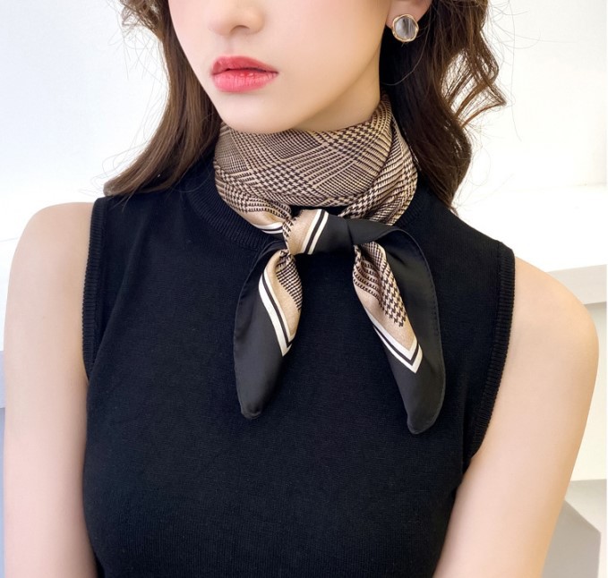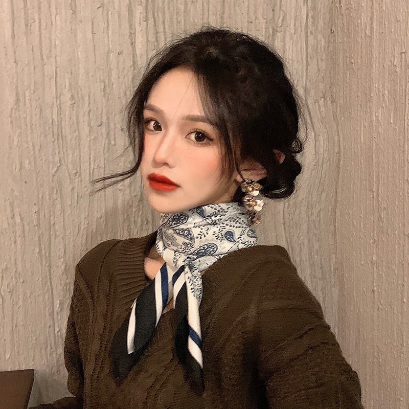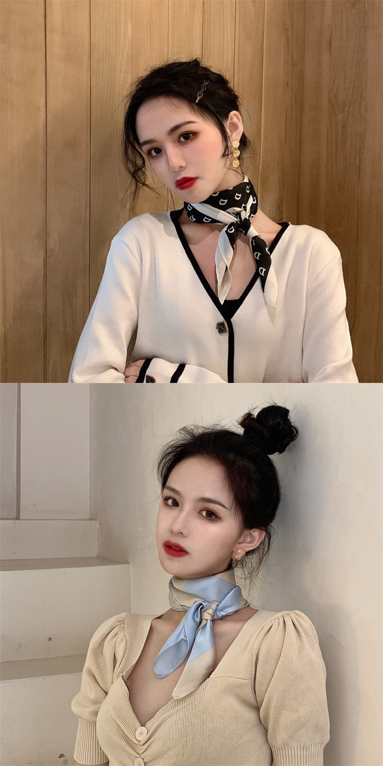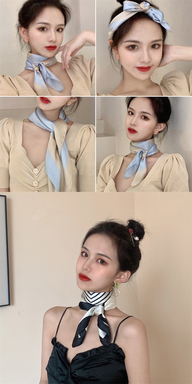 새로운 스타일 기질 작은 향기 스카프 스트라이프 안지아 선리 같은 스타일 스퀘어 스카프 심플 한국 스타일 흑백 전문 소형 스카프스토어 가기