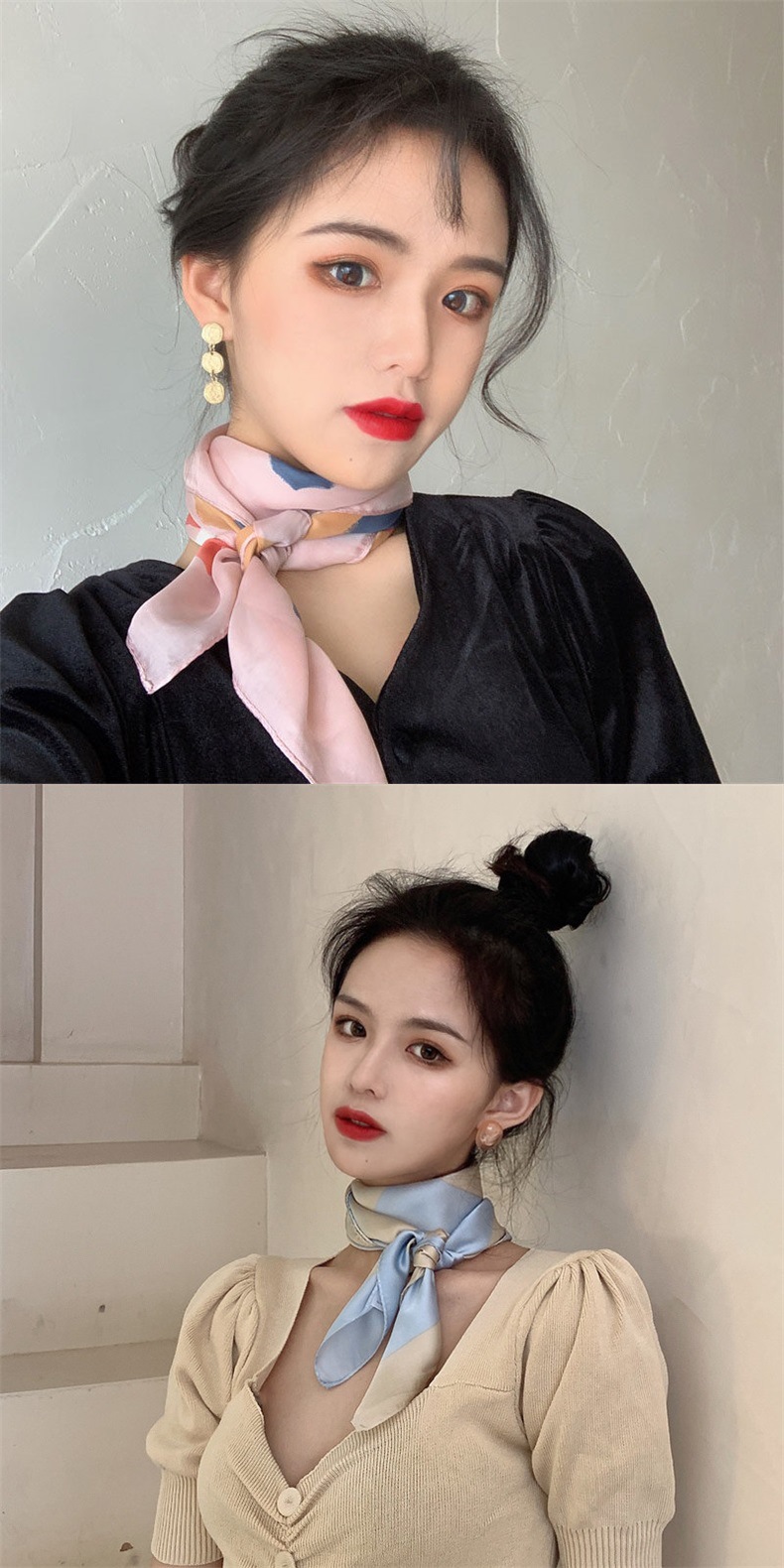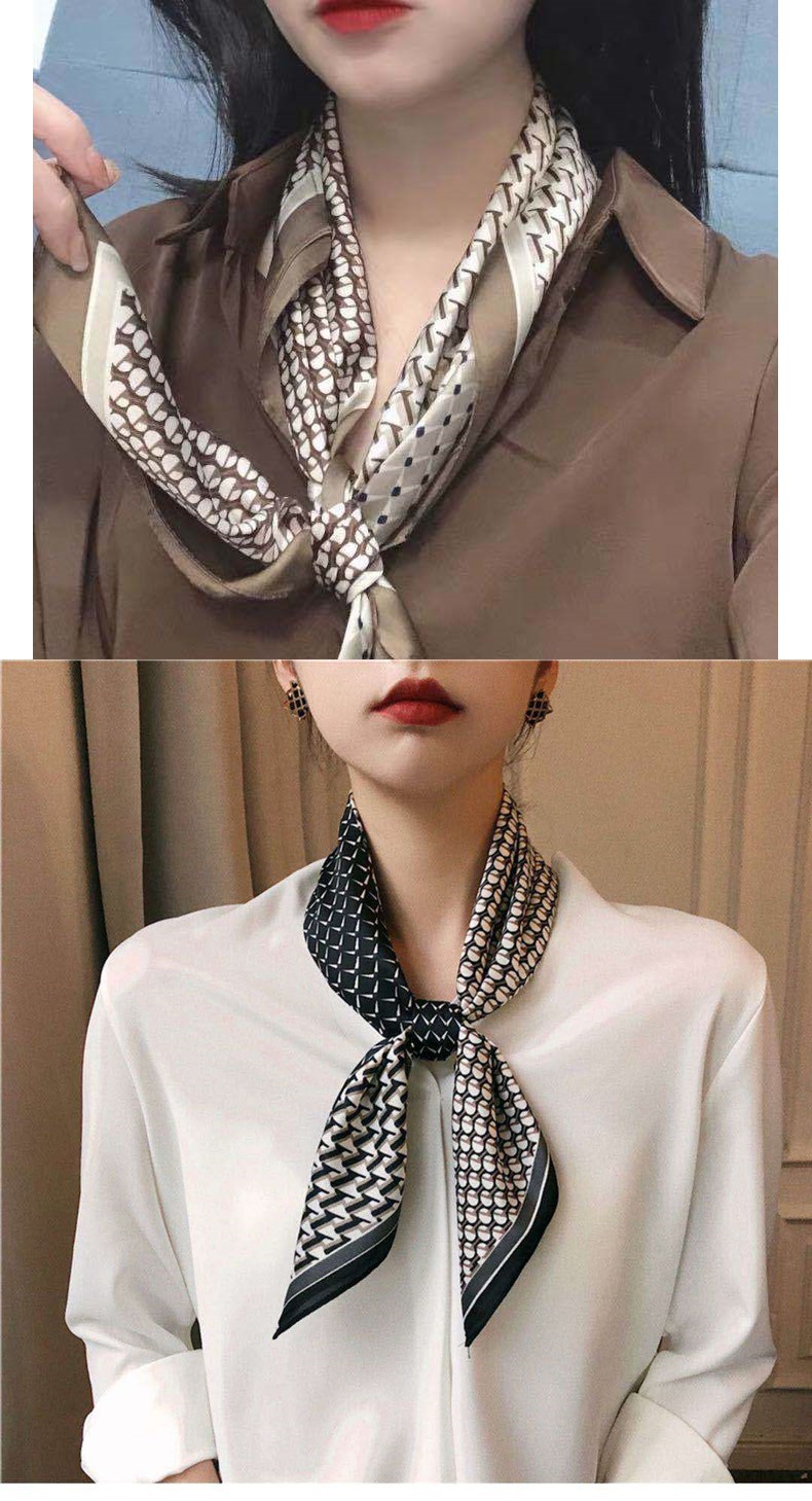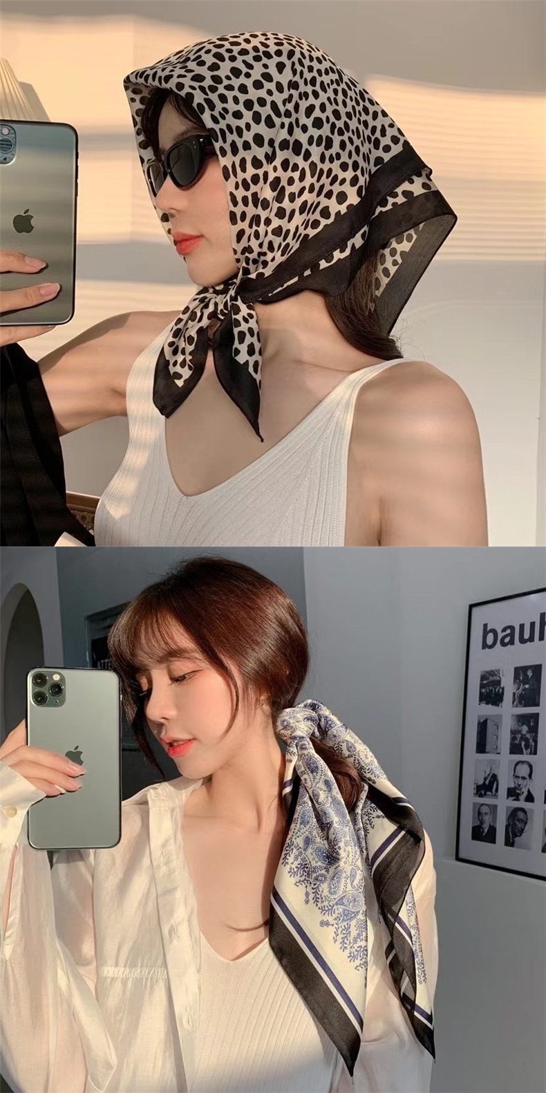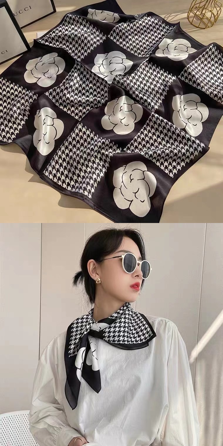 새로운 스타일 기질 작은 향기 스카프 스트라이프 안지아 선리 같은 스타일 스퀘어 스카프 심플 한국 스타일 흑백 전문 소형 스카프스토어 가기