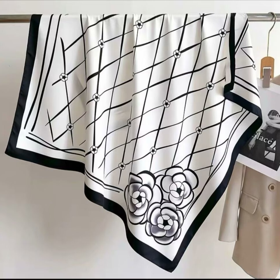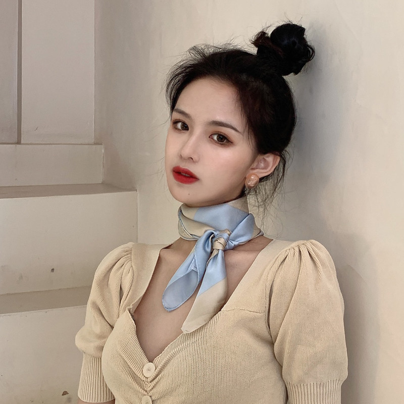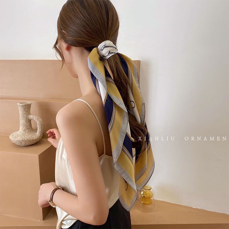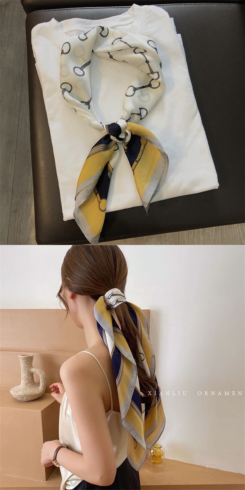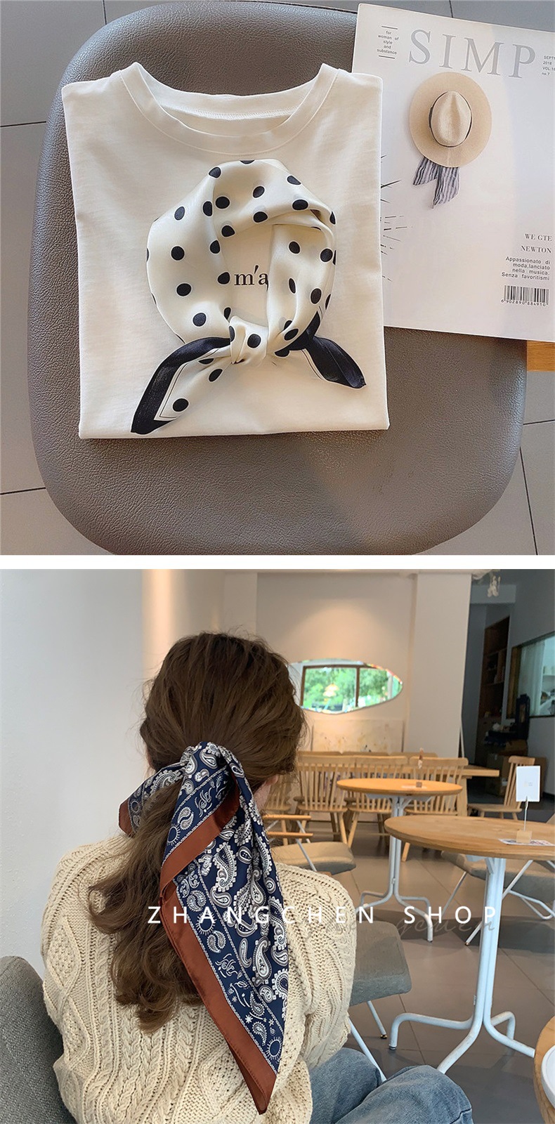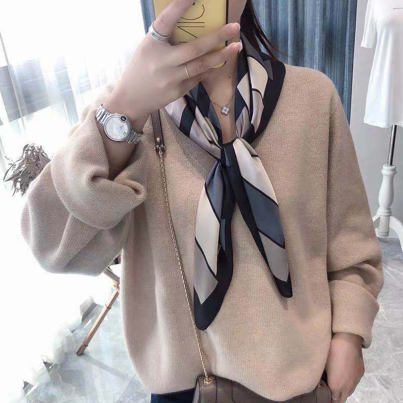 새로운 스타일 기질 작은 향기 스카프 스트라이프 안지아 선리 같은 스타일 스퀘어 스카프 심플 한국 스타일 흑백 전문 소형 스카프스토어 가기