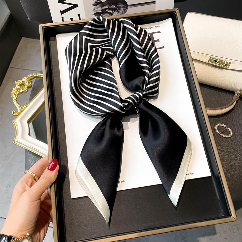 새로운 스타일 기질 작은 향기 스카프 스트라이프 안지아 선리 같은 스타일 스퀘어 스카프 심플 한국 스타일 흑백 전문 소형 스카프
