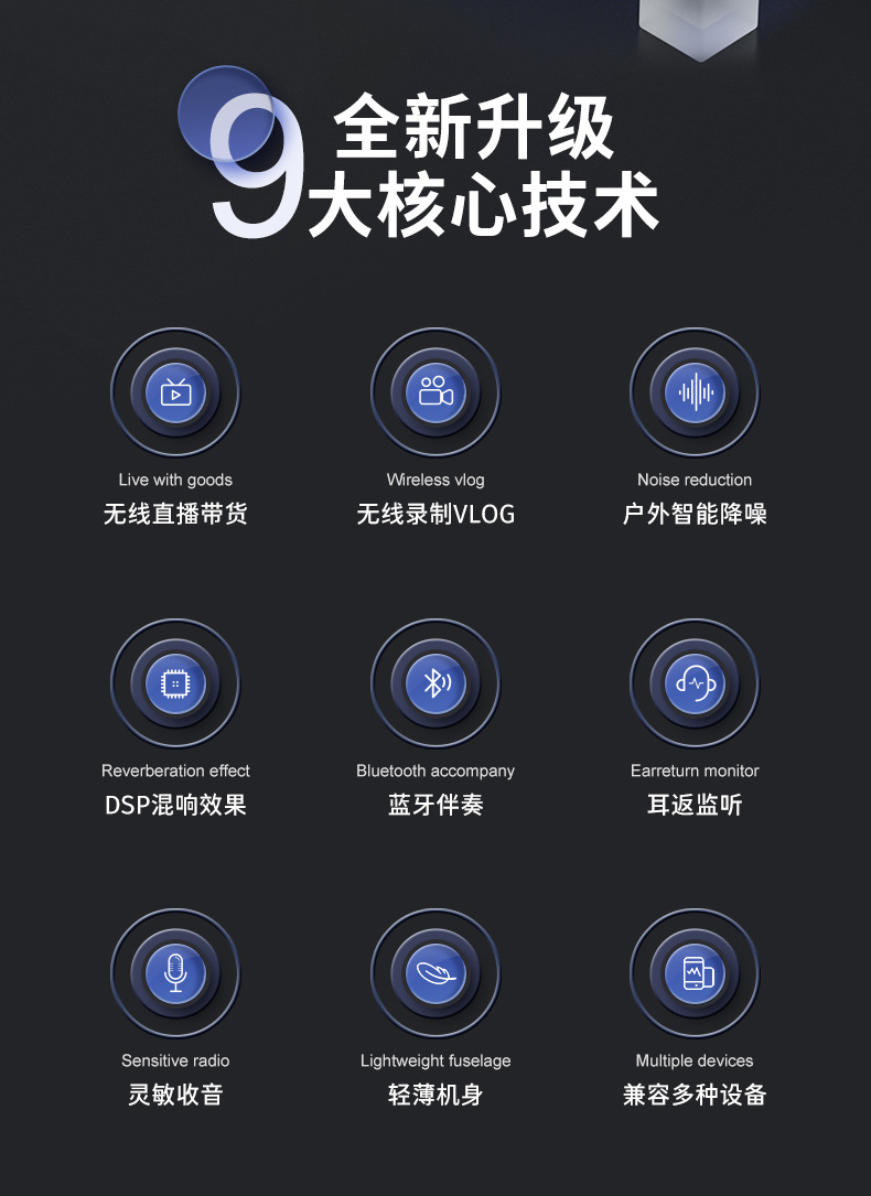 R8 개인 모델 라발리에 무선 마이크 소음 감소 Bluetooth 녹음 노래방 라이브 방송 라디오 마이크 소형 마이크스토어 가기