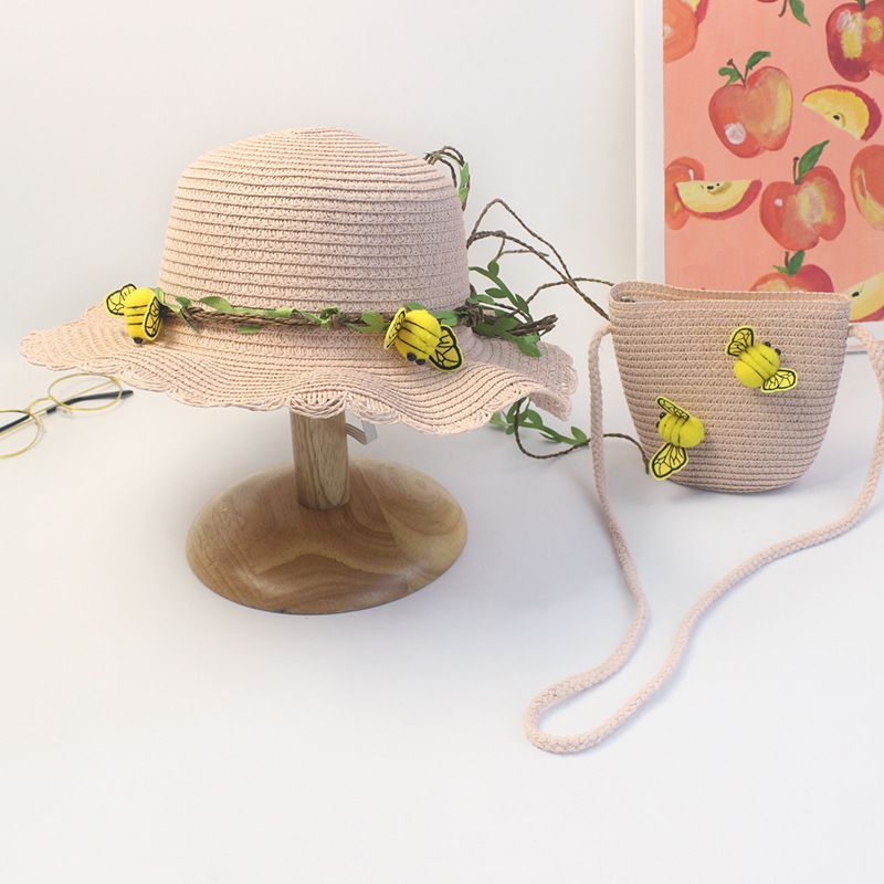 한국 부모-자녀 밀짚 모자 선 스크린 차양 모자 넓은 가장자리 파도 잔디 반지 여름 여행 해변 시원한 모자