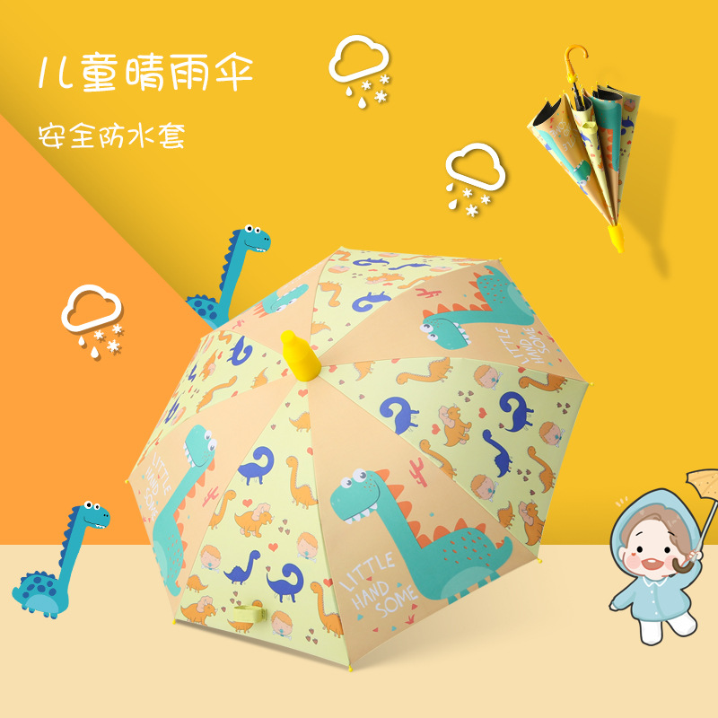 아이스크림 손잡이 방수 케이스 만화 어린이 우산 완전 자동 검은 고무 자외선 차단제 우산 어린이 양산 긴 손잡이 우산스토어 가기