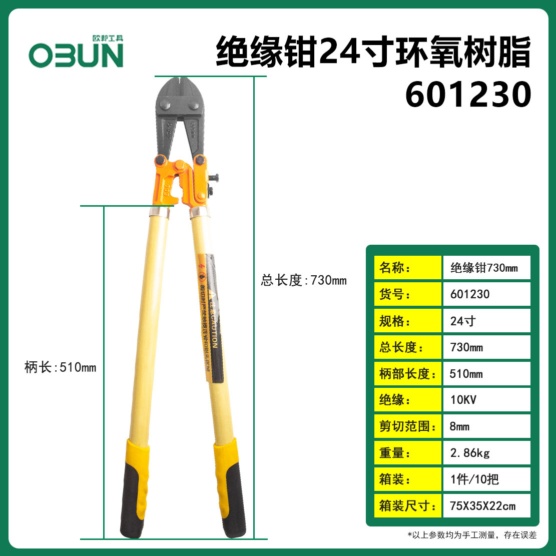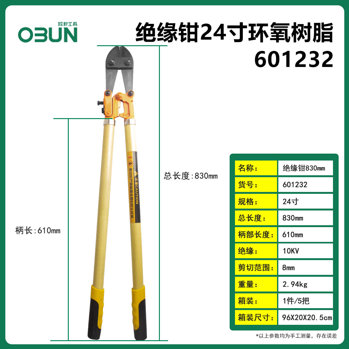 • 601230; 절연 플라이어 에폭시 수지 24 인치/730 mm10kv (상자 1/상자 10) 2.8kg
