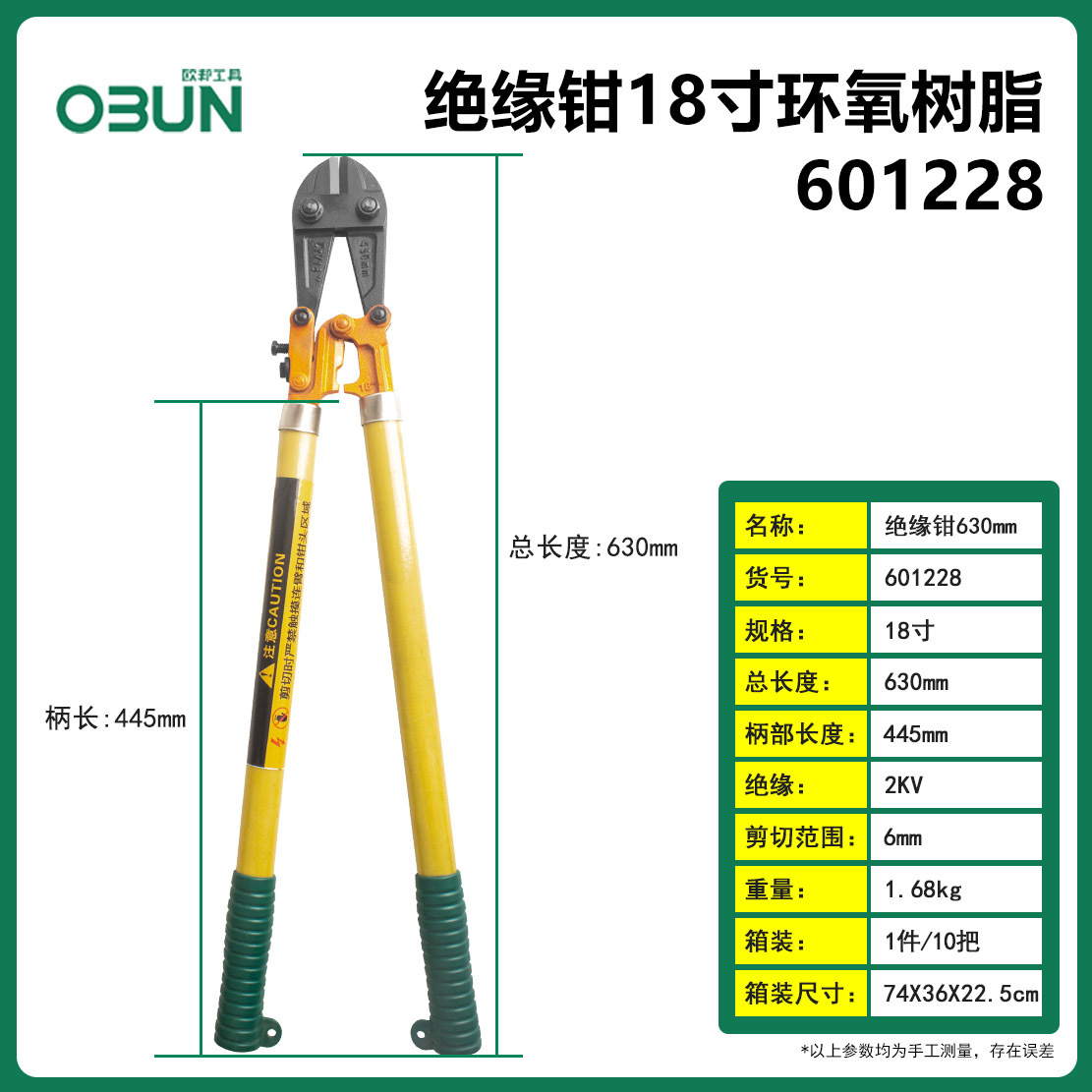 Oubang 절연 와이어 커터 10KV 전압 방화 펜치 전단 강철 케이블 와이어 750mm 강철 전단스토어 가기