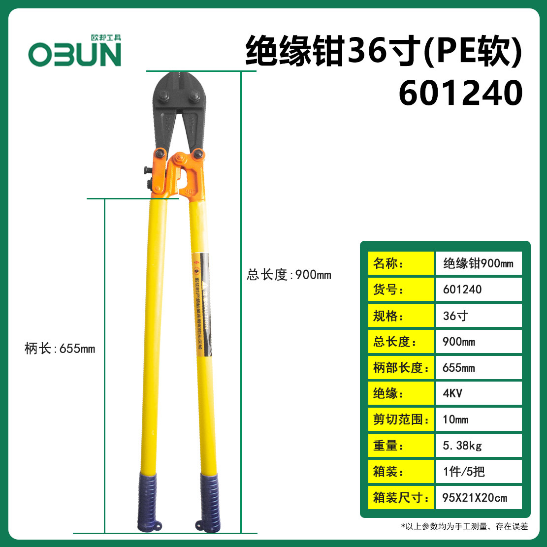 • 601234; 절연 플라이어 에폭시 수지 36 인치/900 mm10kv (상자 1/상자 5) 5.72kg