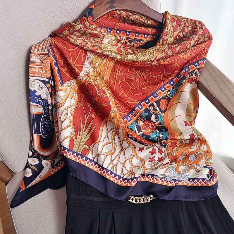 실크 스카프 대형 스퀘어 스카프 여성의 봄과 가을 새로운 패션 모든 매치 스카프 한국 스타일 서양 어머니 숄 스퀘어 스카프 머리 스카프스토어 가기