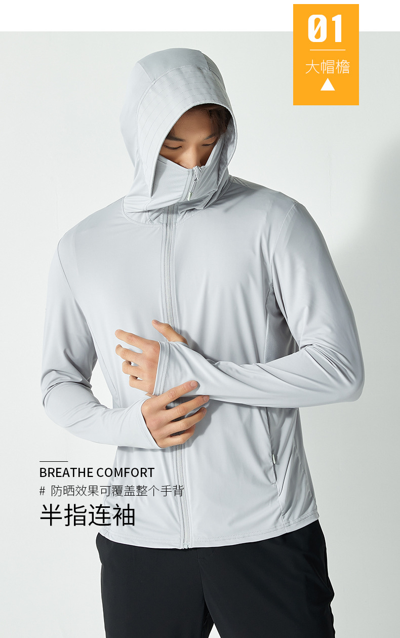 태양 보호 의류 남성 빅 햇 브림 아이스 실크 탄성 통기성 UPF50 안티 UV 솔리드 컬러 낚시 의류 남성 여름 뉴스토어 가기