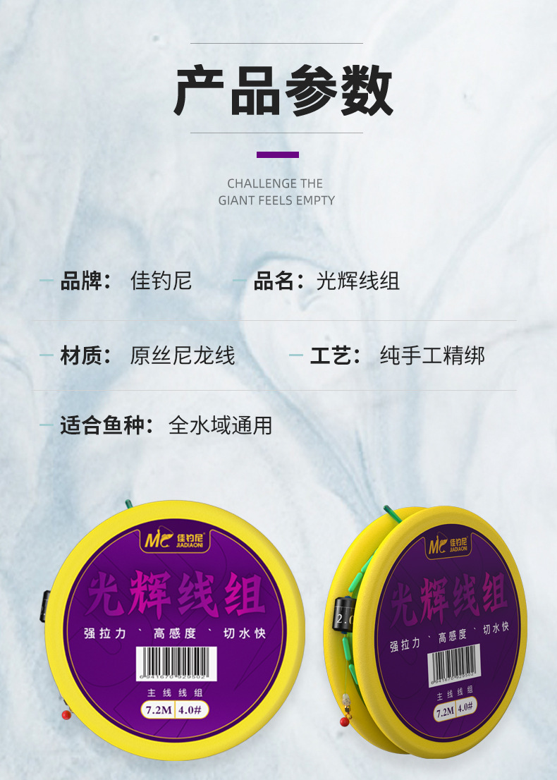 Jiadaoni Guanghui 라인 그룹 낚싯줄 세트 묶인 실버 잉어와 bighead 잉어 낚시 메인 라인 서브 라인 낚시 장비의 완전한 세트