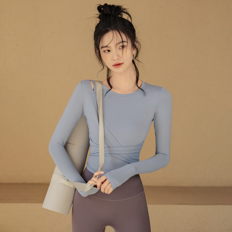 2022 새로운 요가 의류 여성용 스포츠 탑 긴 소매 달리기 높은 감각 전문 훈련 피트니스 의류