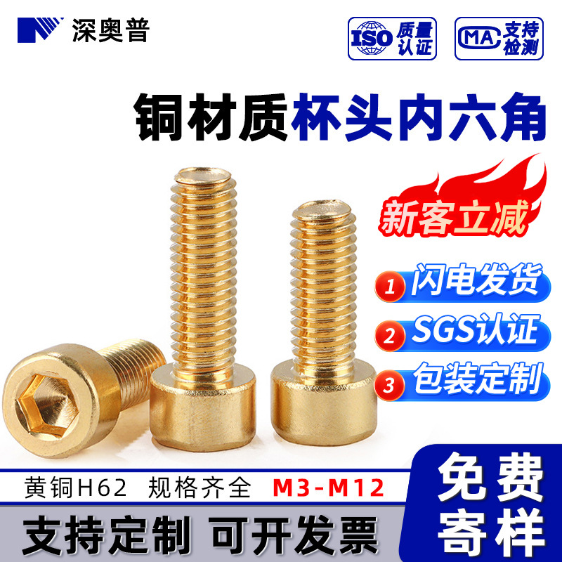 구리 실린더 헤드 육각 볼트 황동 H62 컵 헤드 육각 나사 M3M4M5M6M8M10M12