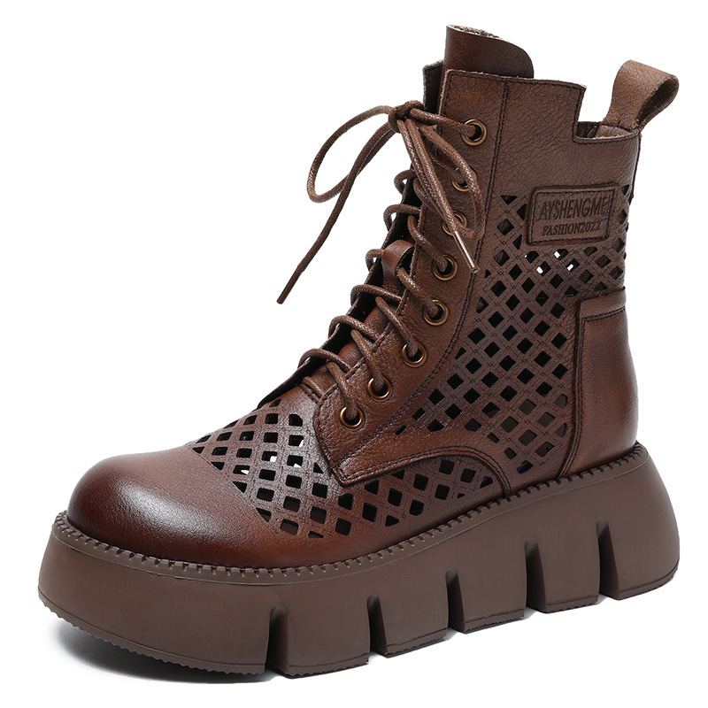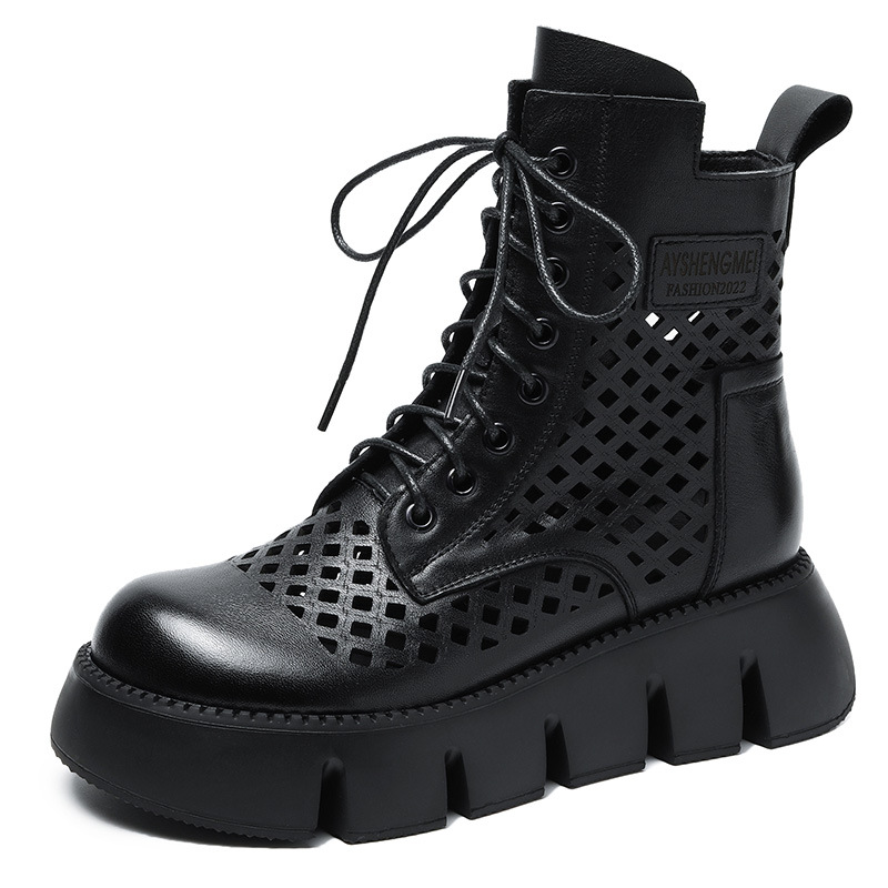 리얼 소가죽 플랫폼 바닥 빈티지 중공 마틴 부츠 여성용 얇은 짧은 부츠 2022 새로운 봄과 여름 미드 힐 싱글 레이어 샌들