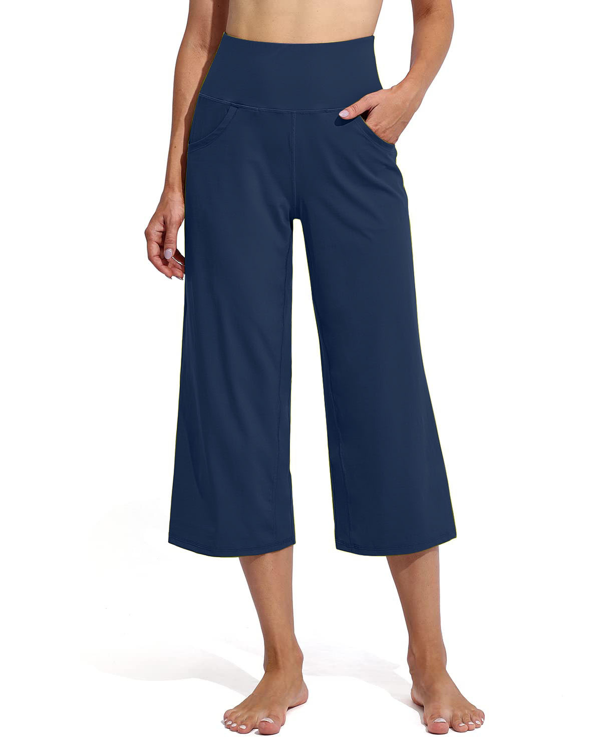 크로스 보더 가을 새로운 레저 스타일 스포츠 요가 바지 여성용 하이 웨이스트 엉덩이 와이드 레그 피트니스 러닝 카프리 바지