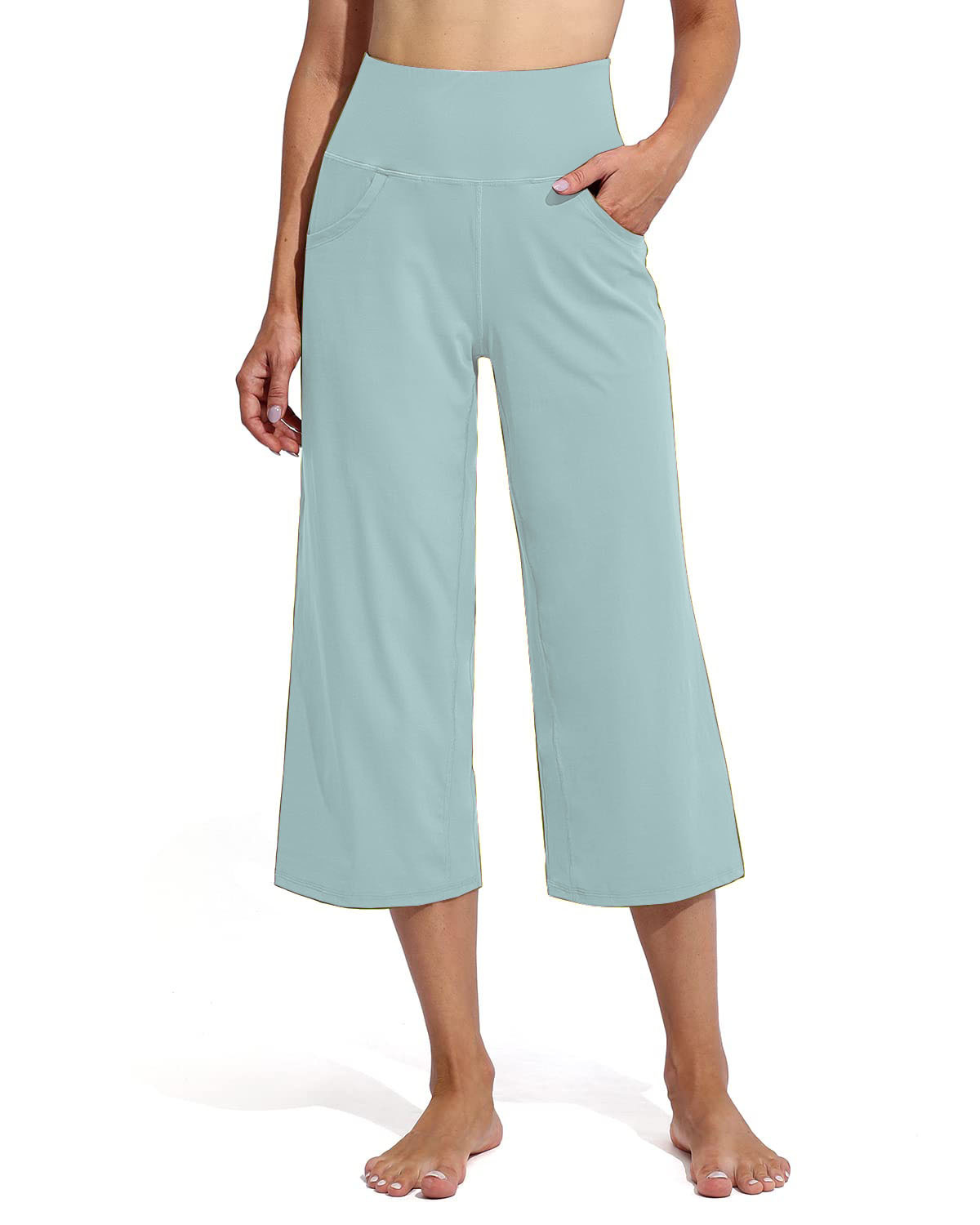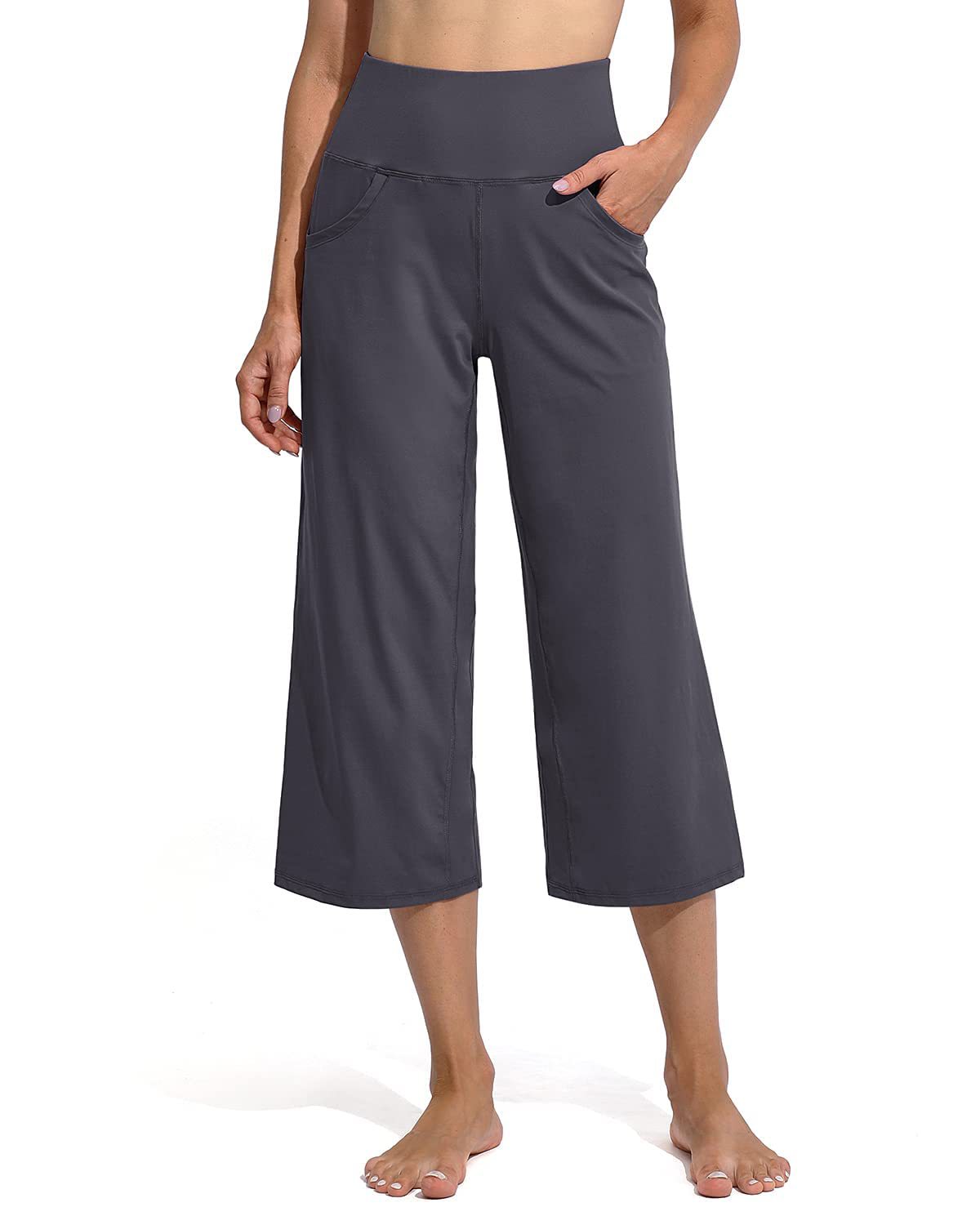 크로스 보더 가을 새로운 레저 스타일 스포츠 요가 바지 여성용 하이 웨이스트 엉덩이 와이드 레그 피트니스 러닝 카프리 바지스토어 가기